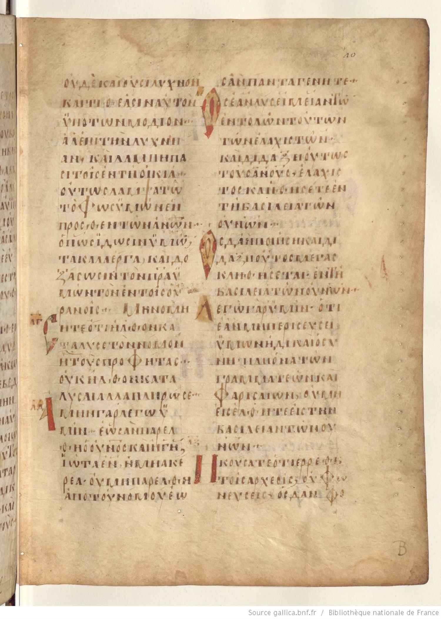 Codex Regius is an eighth-century (alt. date ninth-century) manuscript of the Gospels on parchment; 257 leaves, 2 columns, 25 lines per column. Only a selection of images are available at this time. For recent images please see the Bibliothèque Nationale.