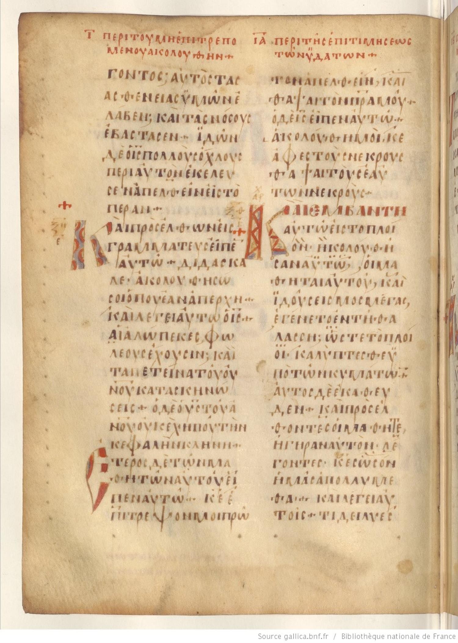 Codex Regius is an eighth-century (alt. date ninth-century) manuscript of the Gospels on parchment; 257 leaves, 2 columns, 25 lines per column. Only a selection of images are available at this time. For recent images please see the Bibliothèque Nationale.