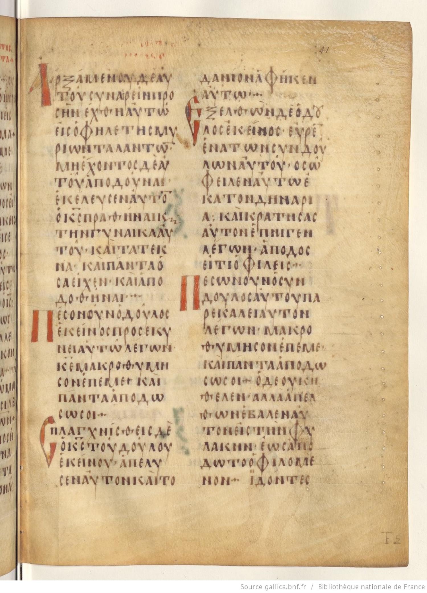 Codex Regius is an eighth-century (alt. date ninth-century) manuscript of the Gospels on parchment; 257 leaves, 2 columns, 25 lines per column. Only a selection of images are available at this time. For recent images please see the Bibliothèque Nationale.