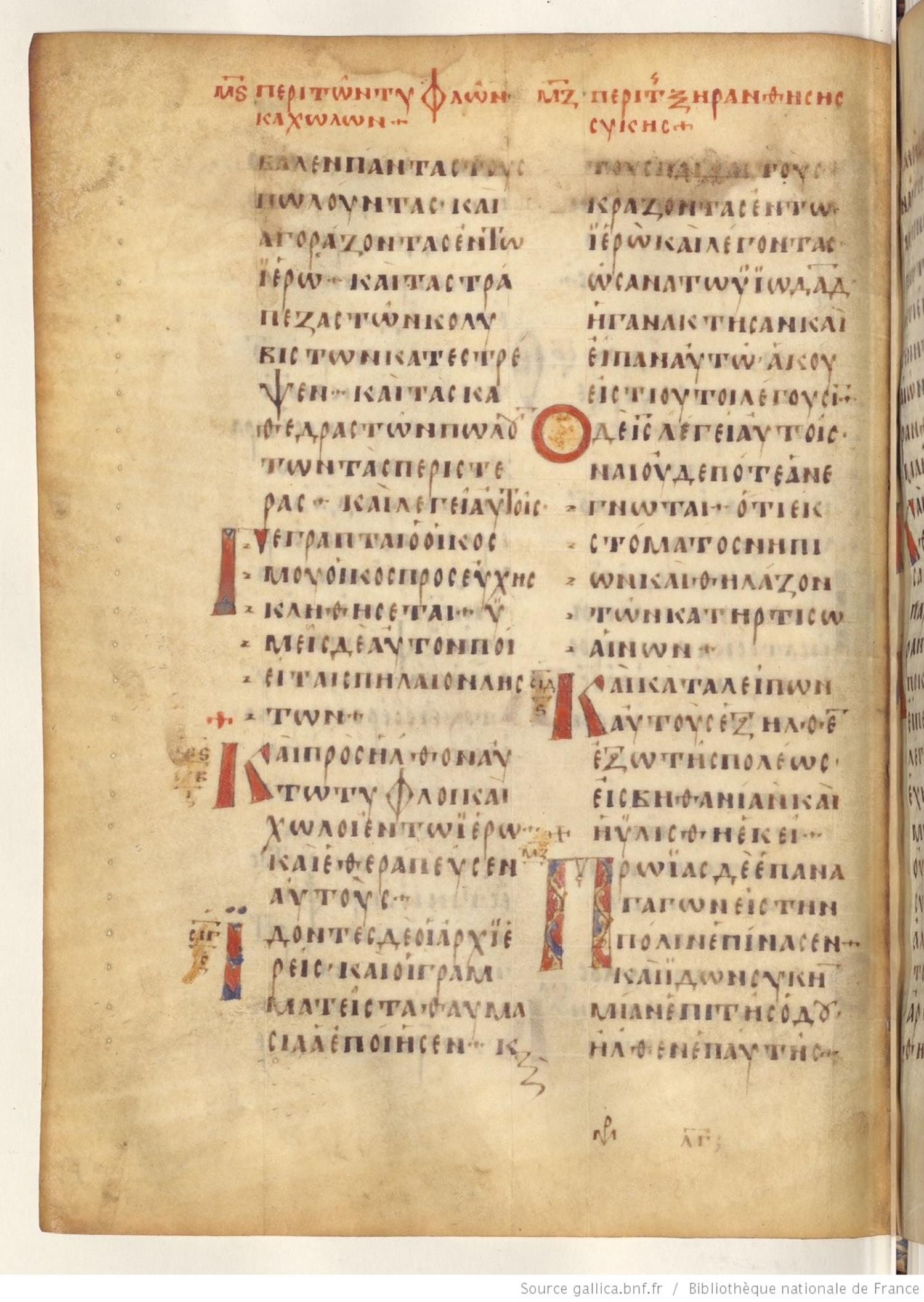 Codex Regius is an eighth-century (alt. date ninth-century) manuscript of the Gospels on parchment; 257 leaves, 2 columns, 25 lines per column. Only a selection of images are available at this time. For recent images please see the Bibliothèque Nationale.