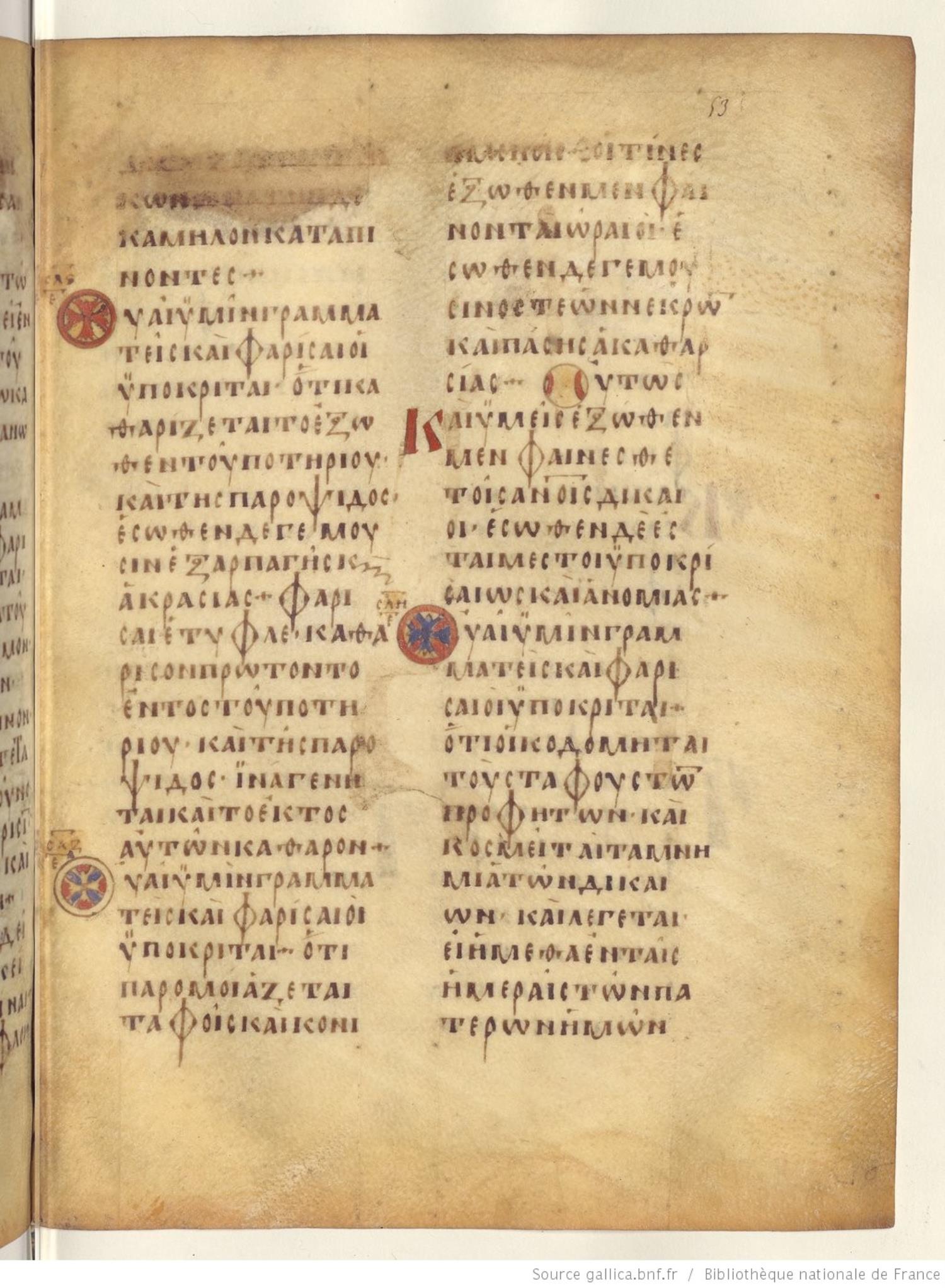 Codex Regius is an eighth-century (alt. date ninth-century) manuscript of the Gospels on parchment; 257 leaves, 2 columns, 25 lines per column. Only a selection of images are available at this time. For recent images please see the Bibliothèque Nationale.
