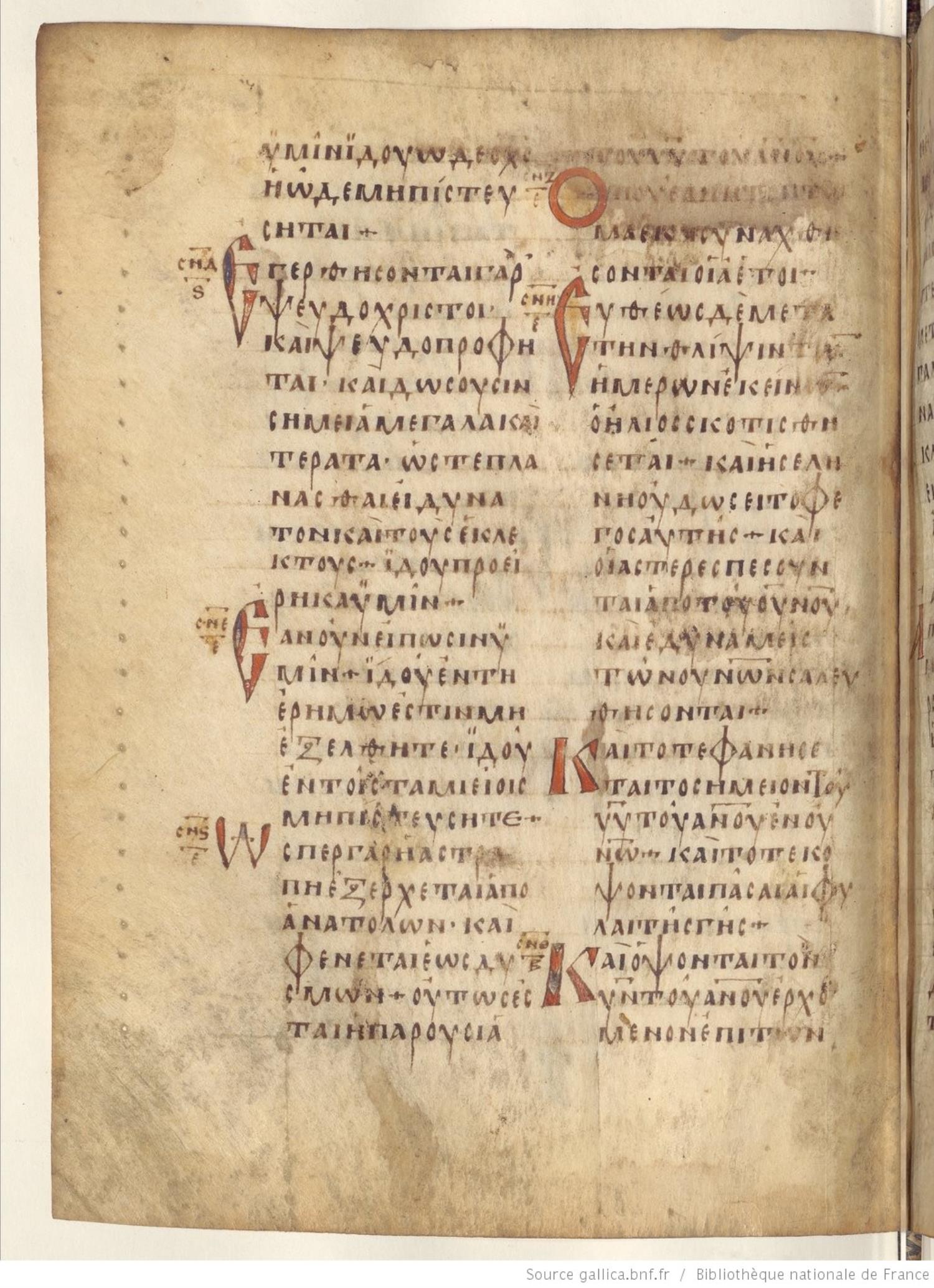Codex Regius is an eighth-century (alt. date ninth-century) manuscript of the Gospels on parchment; 257 leaves, 2 columns, 25 lines per column. Only a selection of images are available at this time. For recent images please see the Bibliothèque Nationale.