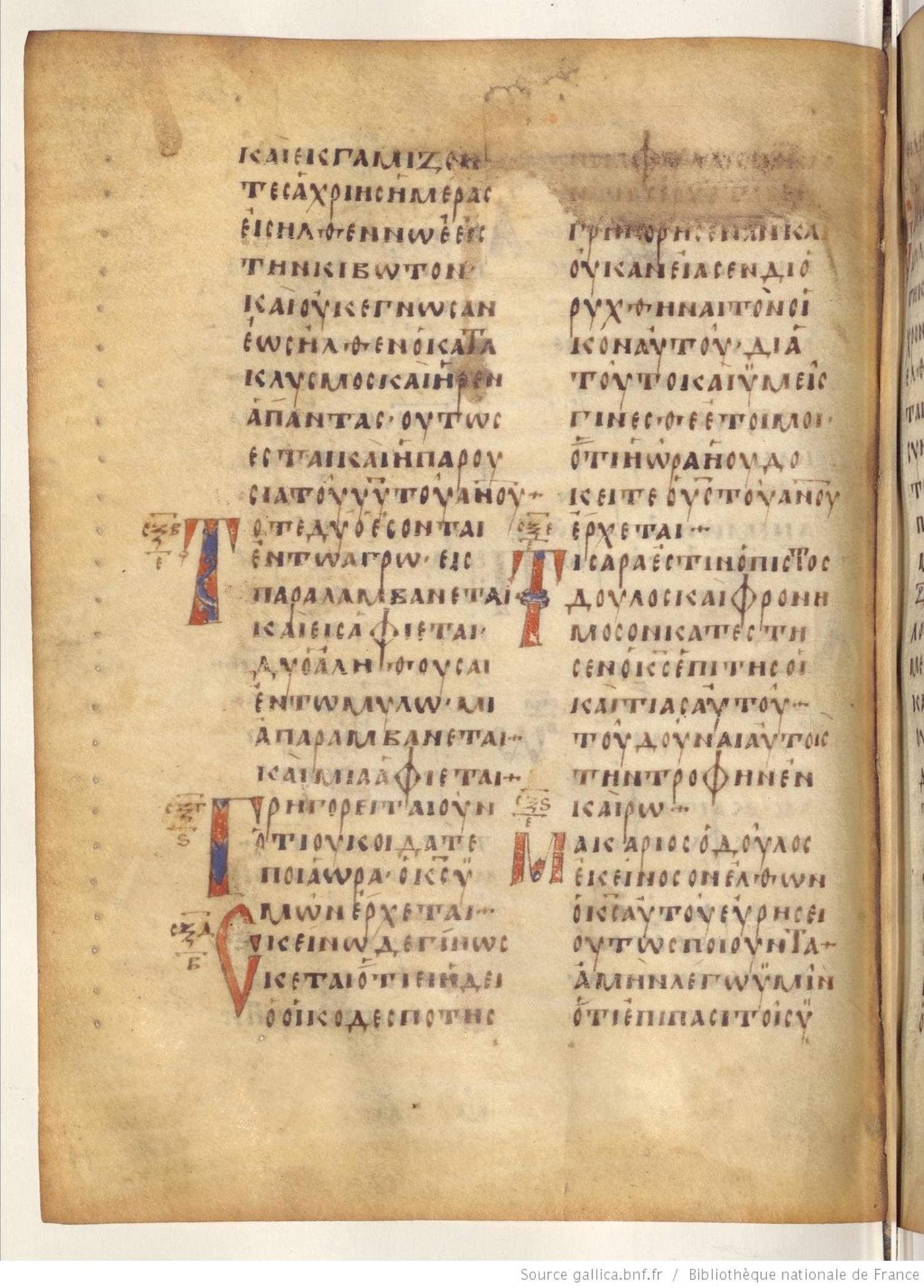 Codex Regius is an eighth-century (alt. date ninth-century) manuscript of the Gospels on parchment; 257 leaves, 2 columns, 25 lines per column. Only a selection of images are available at this time. For recent images please see the Bibliothèque Nationale.