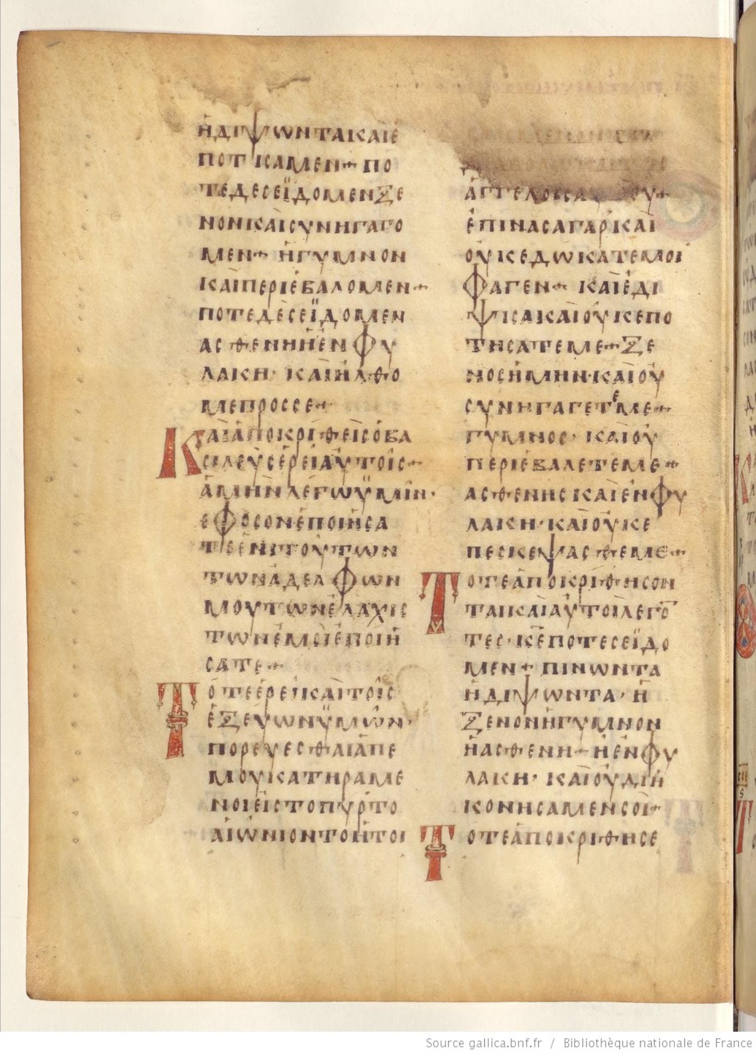 Codex Regius is an eighth-century (alt. date ninth-century) manuscript of the Gospels on parchment; 257 leaves, 2 columns, 25 lines per column. Only a selection of images are available at this time. For recent images please see the Bibliothèque Nationale.