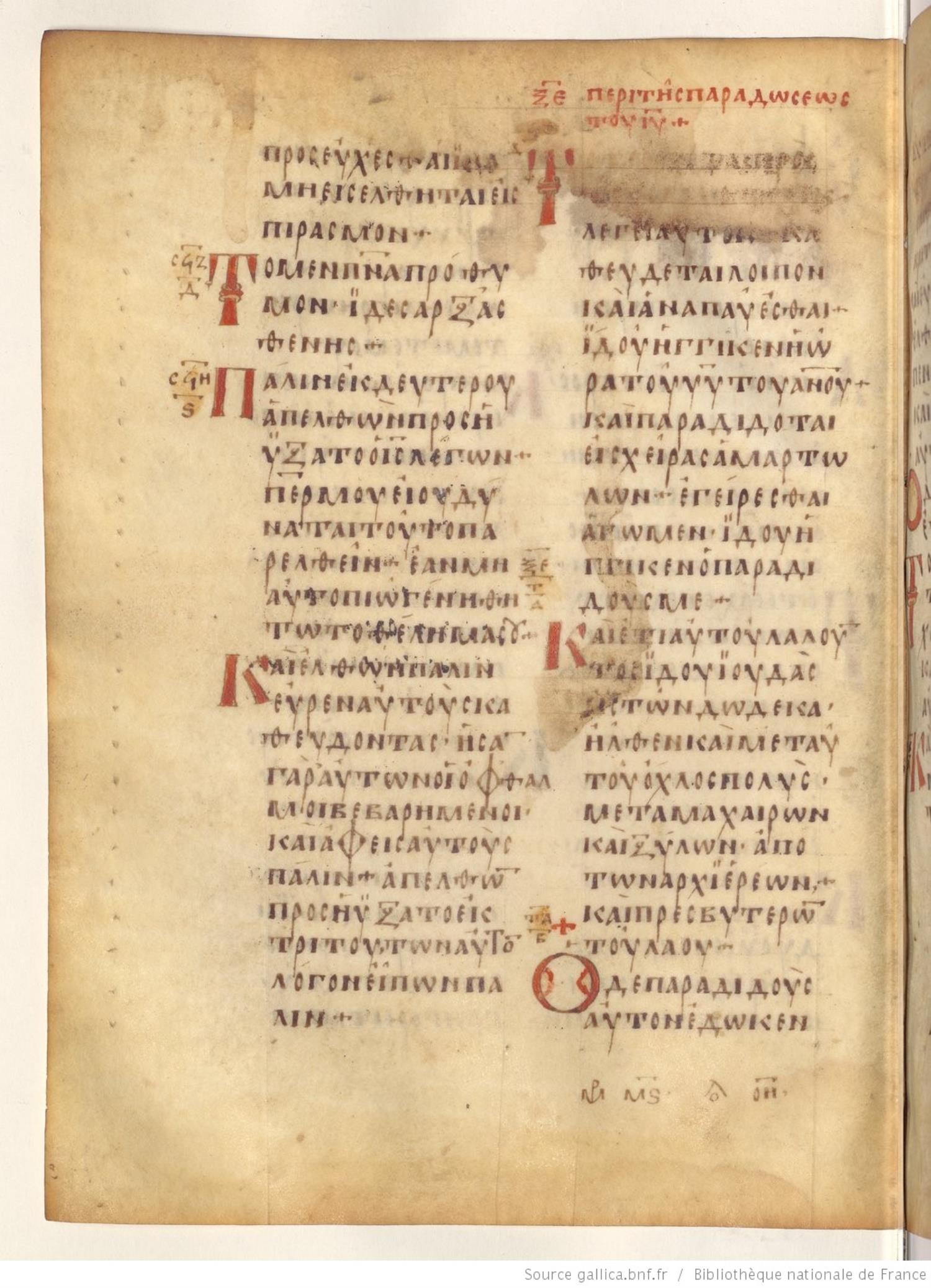 Codex Regius is an eighth-century (alt. date ninth-century) manuscript of the Gospels on parchment; 257 leaves, 2 columns, 25 lines per column. Only a selection of images are available at this time. For recent images please see the Bibliothèque Nationale.