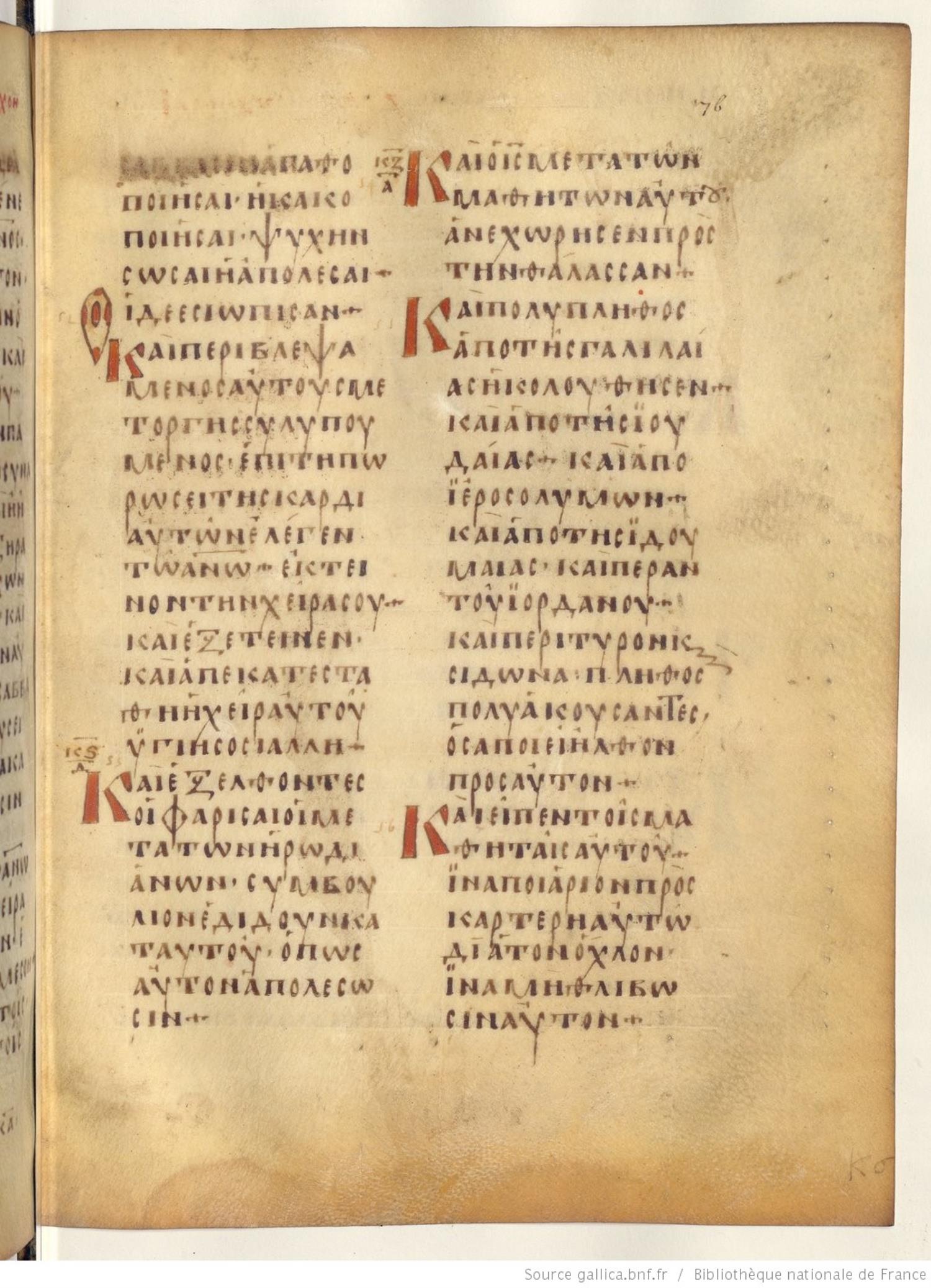 Codex Regius is an eighth-century (alt. date ninth-century) manuscript of the Gospels on parchment; 257 leaves, 2 columns, 25 lines per column. Only a selection of images are available at this time. For recent images please see the Bibliothèque Nationale.