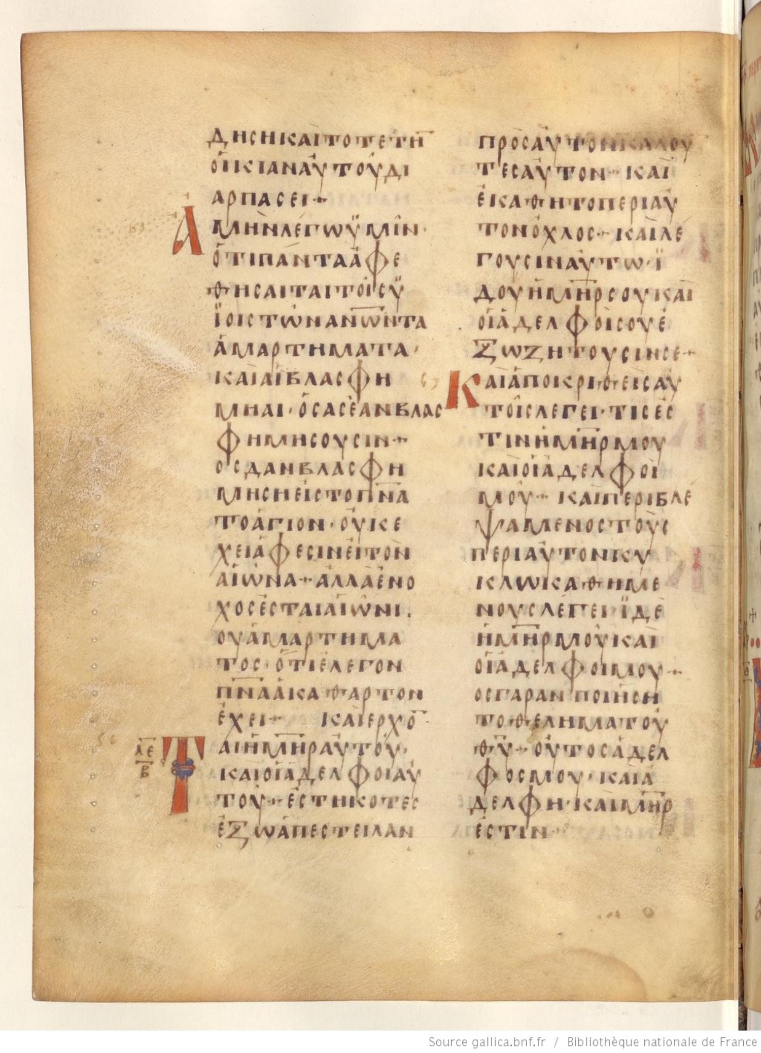 Codex Regius is an eighth-century (alt. date ninth-century) manuscript of the Gospels on parchment; 257 leaves, 2 columns, 25 lines per column. Only a selection of images are available at this time. For recent images please see the Bibliothèque Nationale.