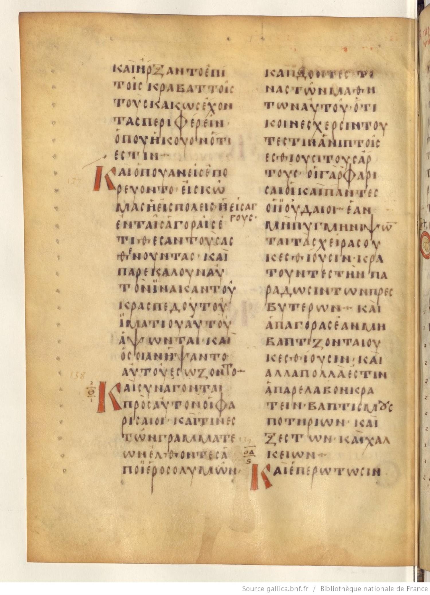 Codex Regius is an eighth-century (alt. date ninth-century) manuscript of the Gospels on parchment; 257 leaves, 2 columns, 25 lines per column. Only a selection of images are available at this time. For recent images please see the Bibliothèque Nationale.