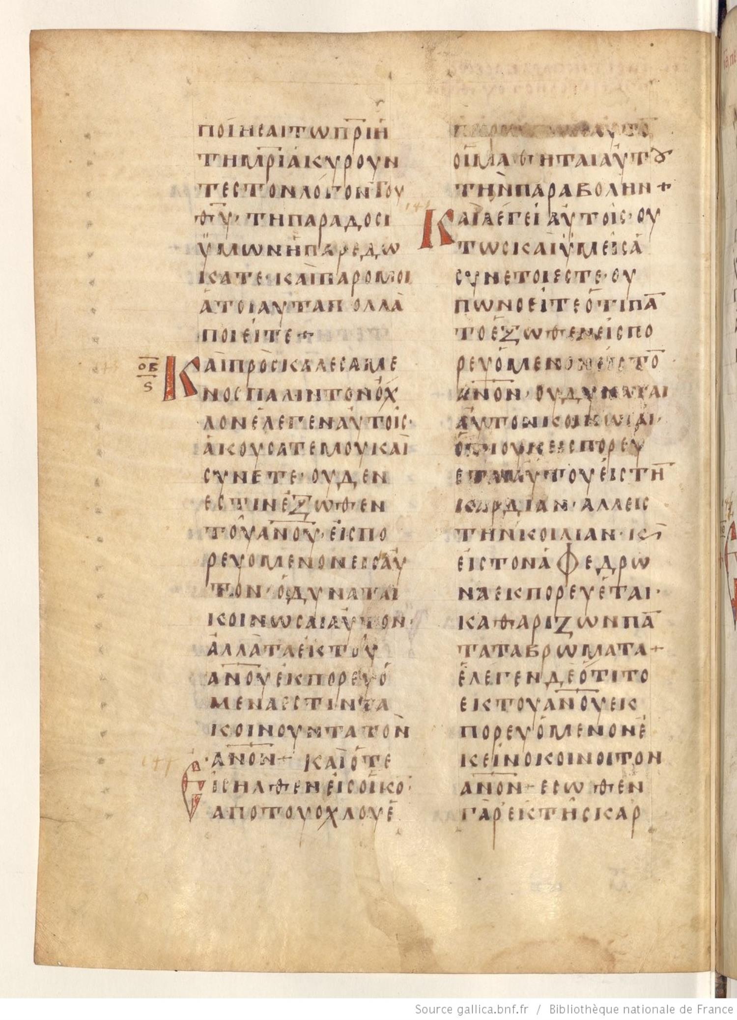 Codex Regius is an eighth-century (alt. date ninth-century) manuscript of the Gospels on parchment; 257 leaves, 2 columns, 25 lines per column. Only a selection of images are available at this time. For recent images please see the Bibliothèque Nationale.