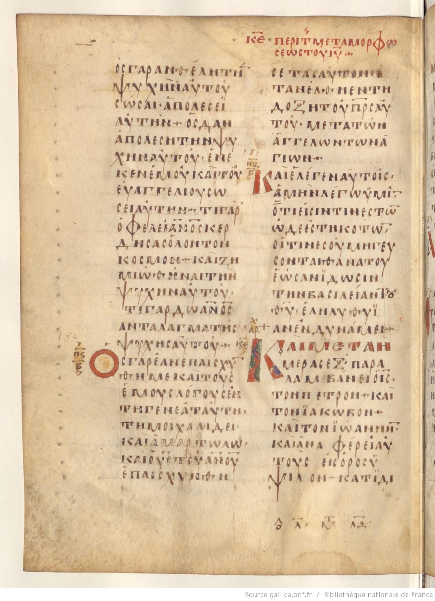 Codex Regius is an eighth-century (alt. date ninth-century) manuscript of the Gospels on parchment; 257 leaves, 2 columns, 25 lines per column. Only a selection of images are available at this time. For recent images please see the Bibliothèque Nationale.