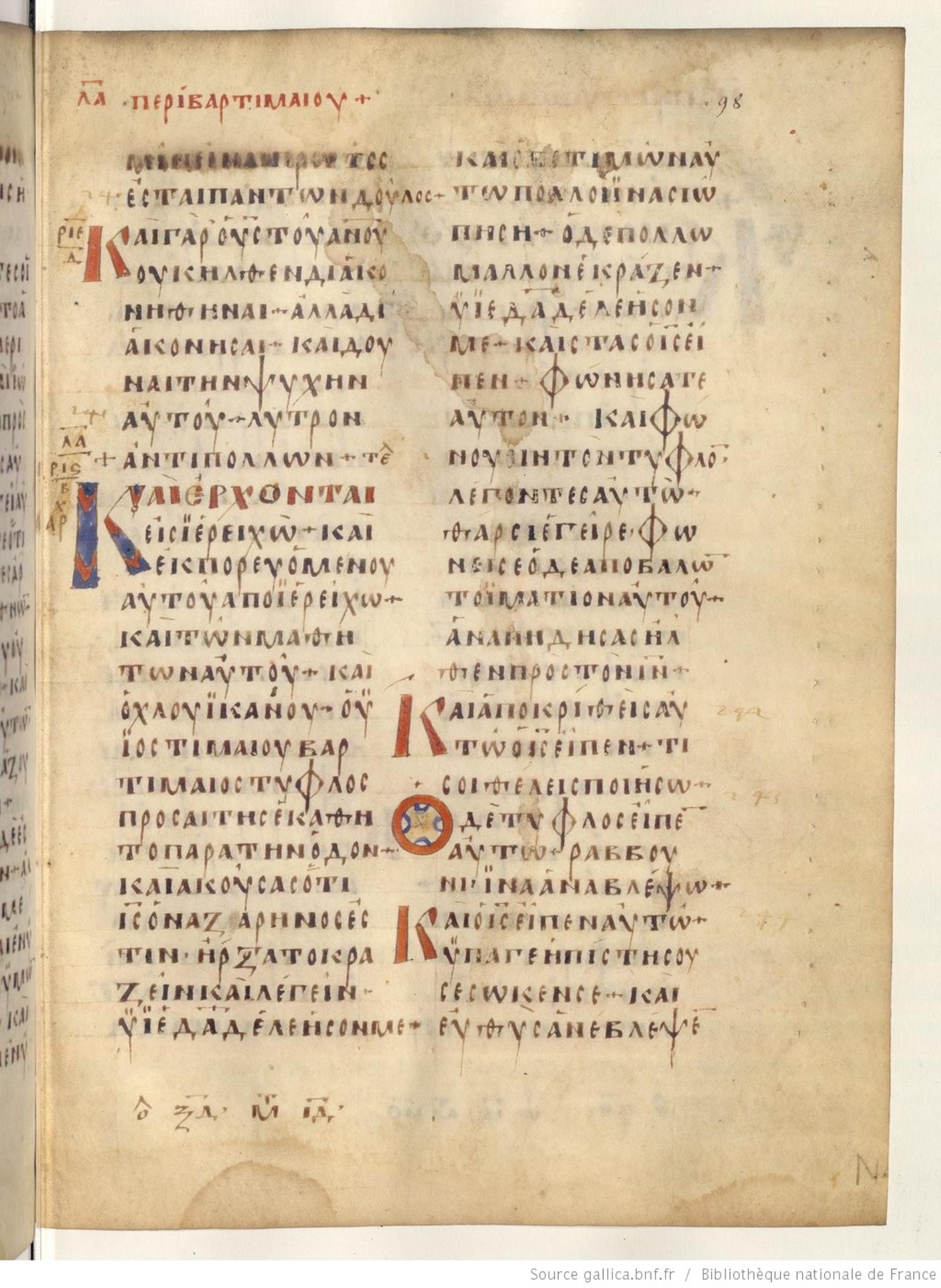 ὁ δὲ ἀποβαλὼν τὸ ἱμάτιον αὐτοῦ ἀναπηδήσας ἦλθεν πρὸς τὸν Ἰησοῦν.