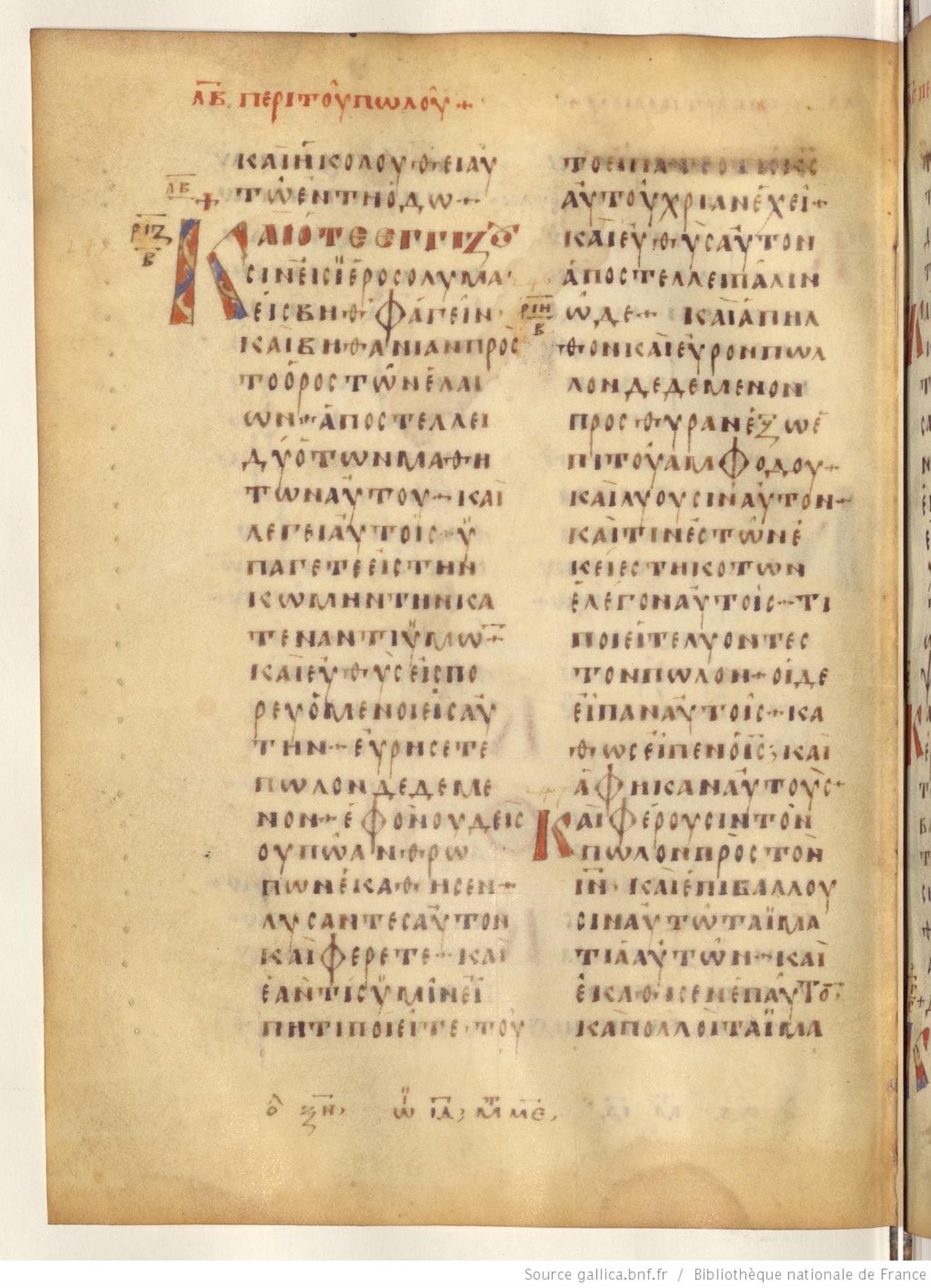 Codex Regius is an eighth-century (alt. date ninth-century) manuscript of the Gospels on parchment; 257 leaves, 2 columns, 25 lines per column. Only a selection of images are available at this time. For recent images please see the Bibliothèque Nationale.