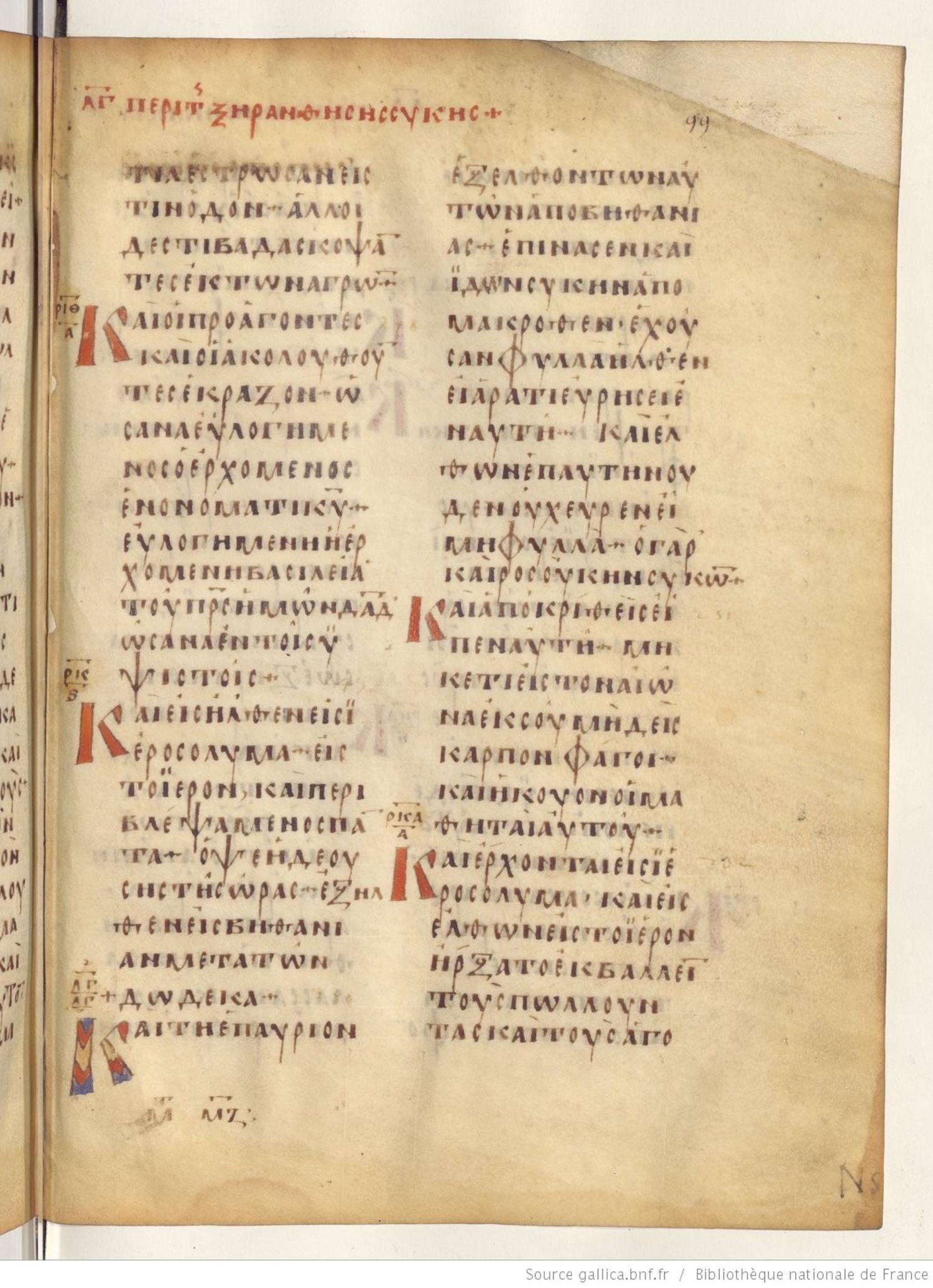Codex Regius is an eighth-century (alt. date ninth-century) manuscript of the Gospels on parchment; 257 leaves, 2 columns, 25 lines per column. Only a selection of images are available at this time. For recent images please see the Bibliothèque Nationale.