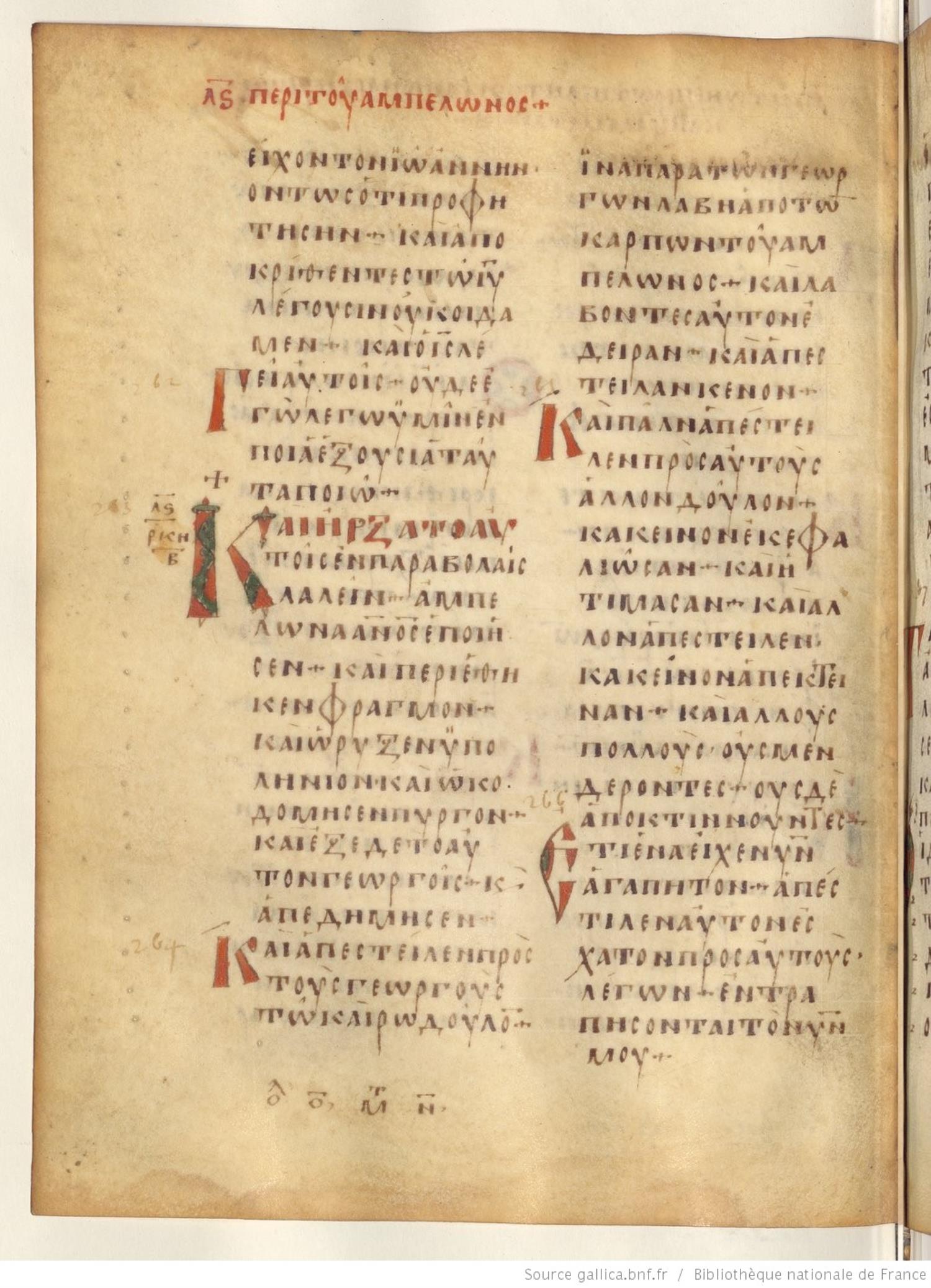 Codex Regius is an eighth-century (alt. date ninth-century) manuscript of the Gospels on parchment; 257 leaves, 2 columns, 25 lines per column. Only a selection of images are available at this time. For recent images please see the Bibliothèque Nationale.