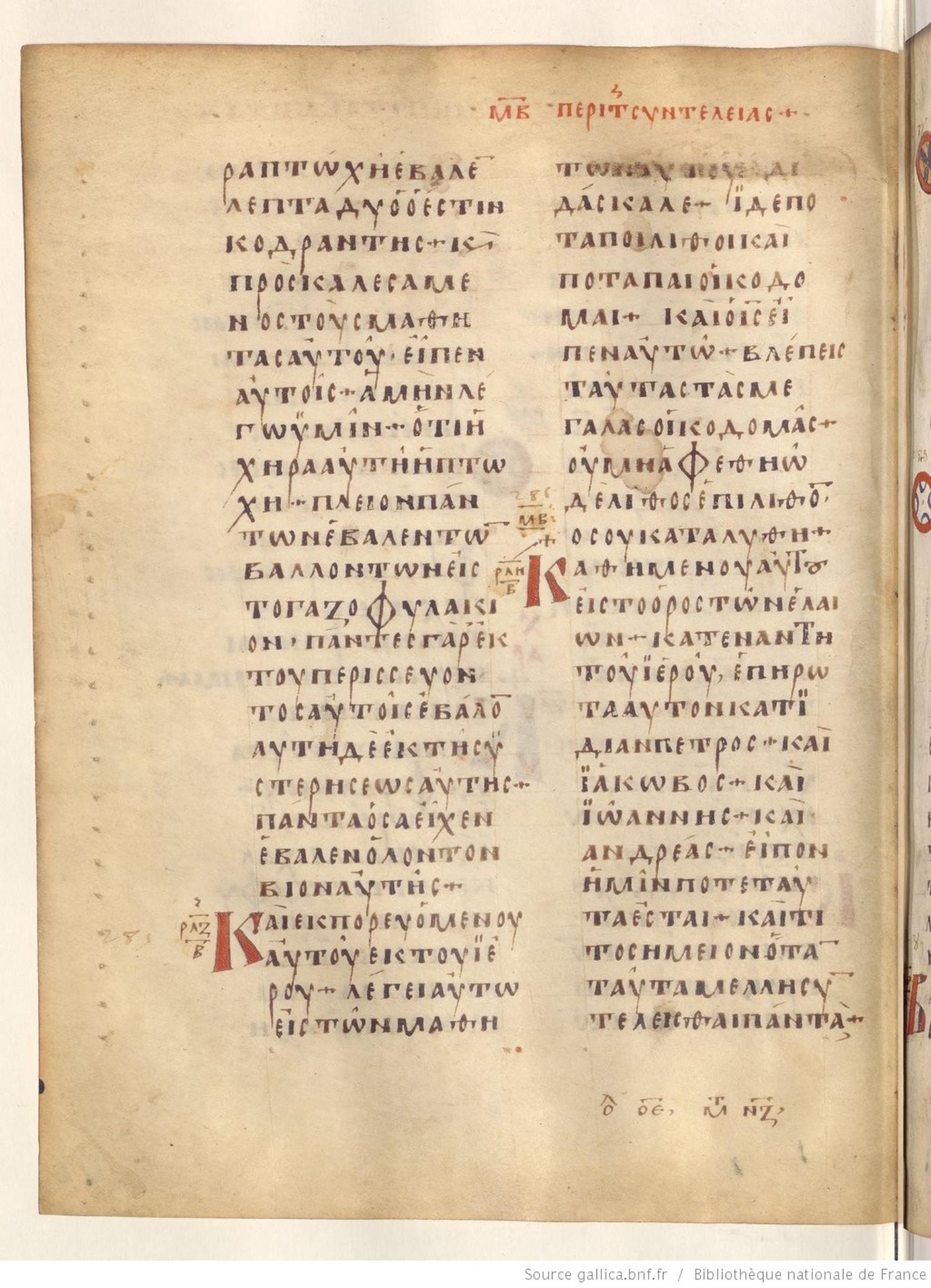 Καὶ ἐκπορευομένου αὐτοῦ ἐκ τοῦ ἱεροῦ λέγει αὐτῷ εἷς τῶν μαθητῶν αὐτοῦ Διδάσκαλε, ἴδε ποταποὶ λίθοι καὶ ποταπαὶ οἰκοδομαί.