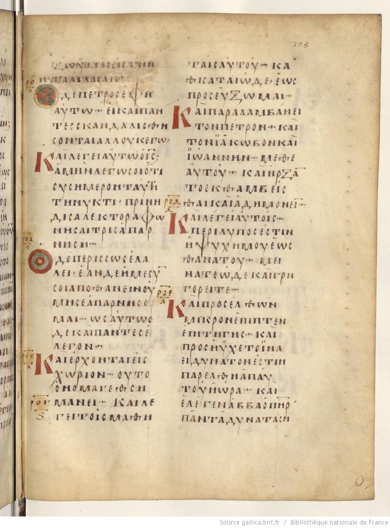 Codex Regius is an eighth-century (alt. date ninth-century) manuscript of the Gospels on parchment; 257 leaves, 2 columns, 25 lines per column. Only a selection of images are available at this time. For recent images please see the Bibliothèque Nationale.