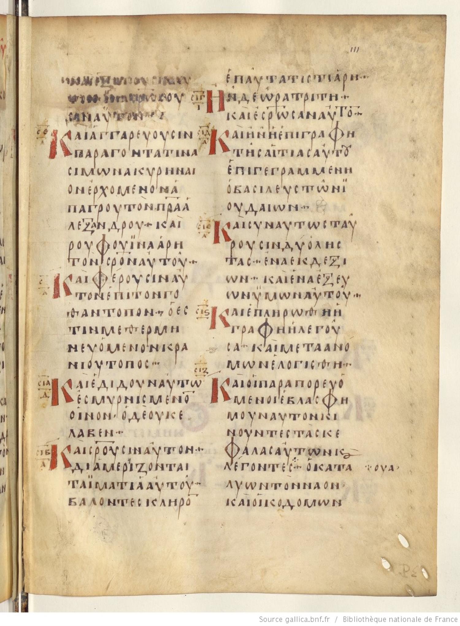 Codex Regius is an eighth-century (alt. date ninth-century) manuscript of the Gospels on parchment; 257 leaves, 2 columns, 25 lines per column. Only a selection of images are available at this time. For recent images please see the Bibliothèque Nationale.
