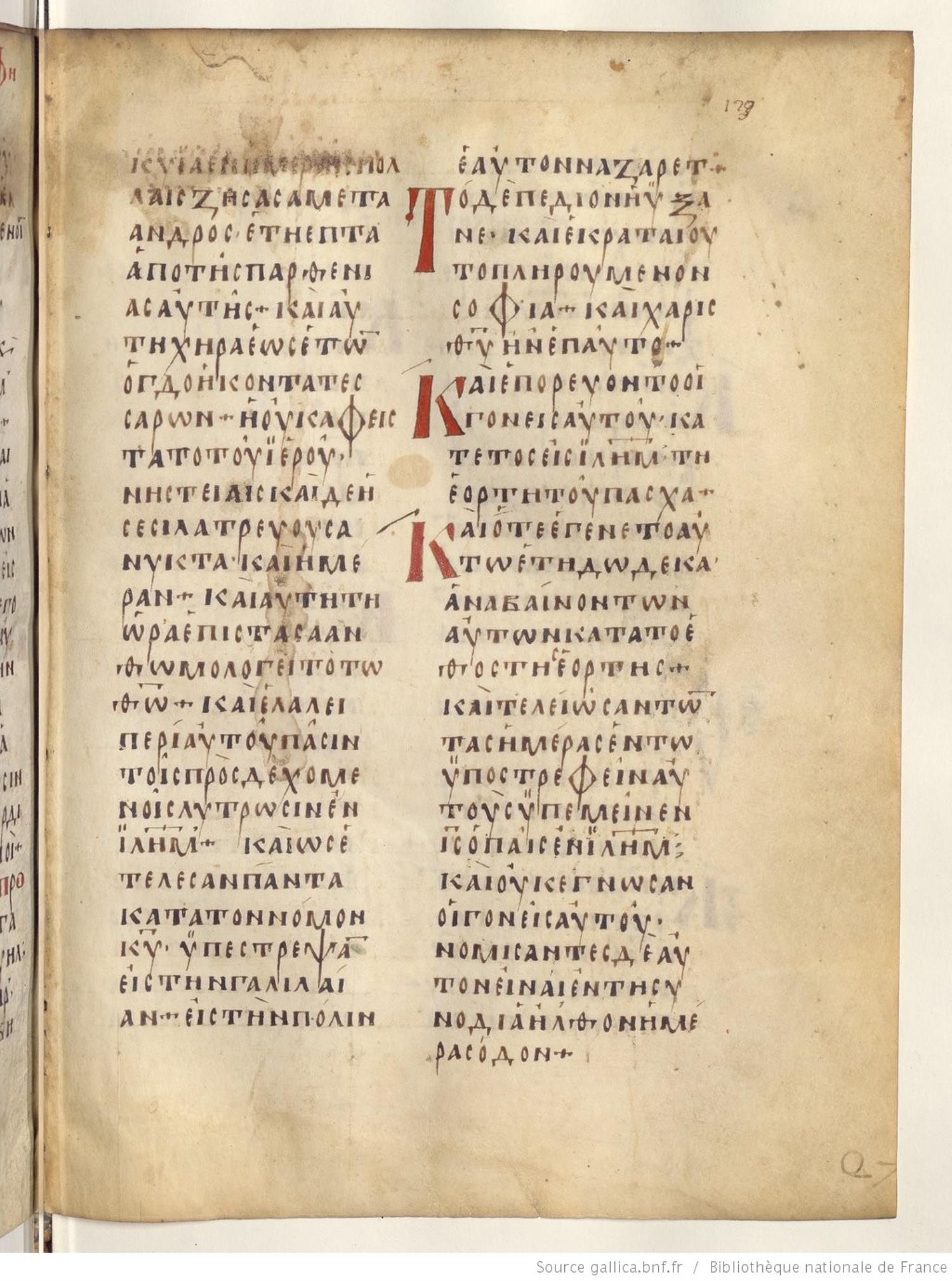 Codex Regius is an eighth-century (alt. date ninth-century) manuscript of the Gospels on parchment; 257 leaves, 2 columns, 25 lines per column. Only a selection of images are available at this time. For recent images please see the Bibliothèque Nationale.