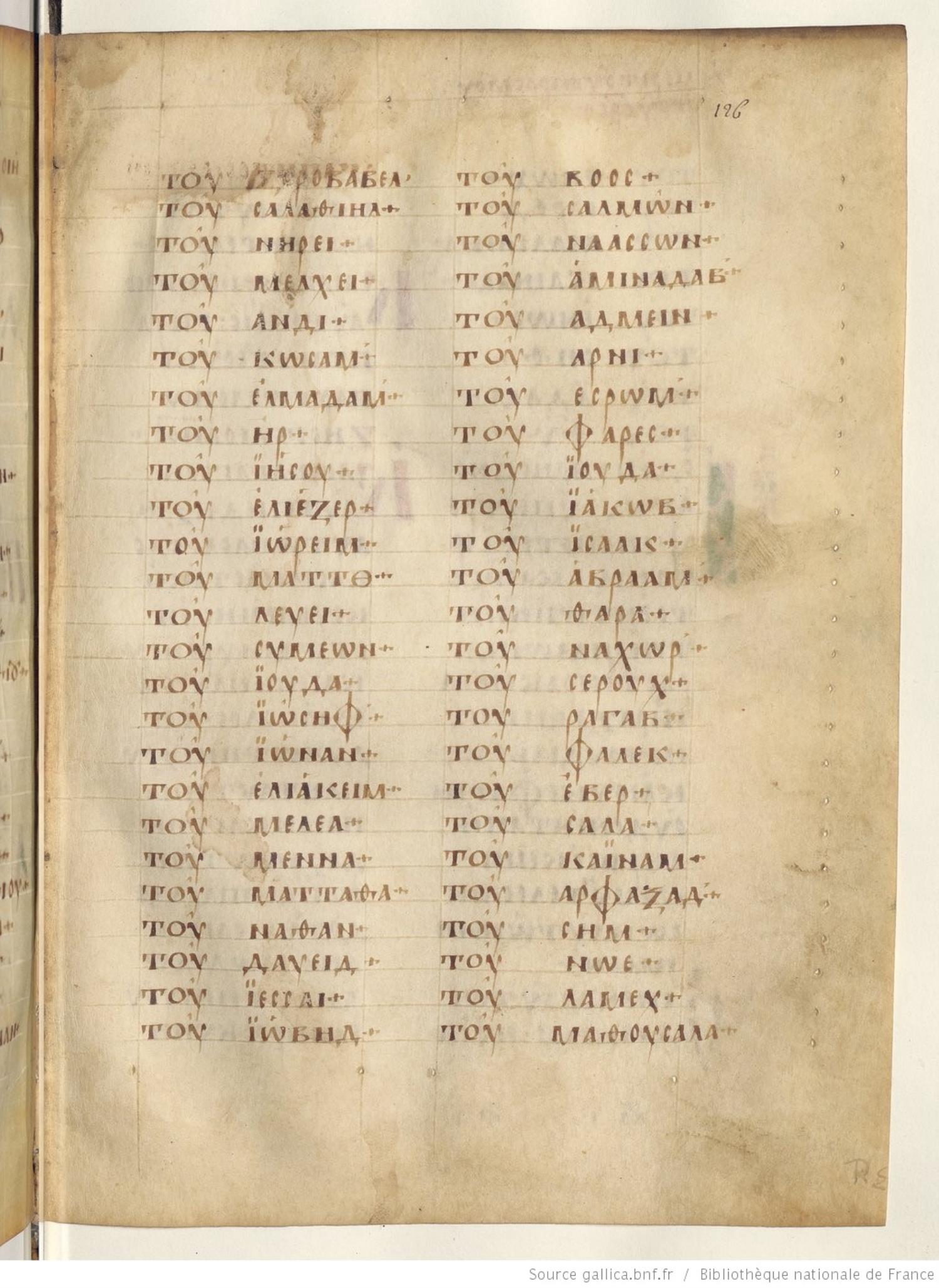 τοῦ Ἰωανάν τοῦ Ῥησά τοῦ Ζοροβάβελ τοῦ Σαλαθιήλ τοῦ Νηρεί / Νηρὶ