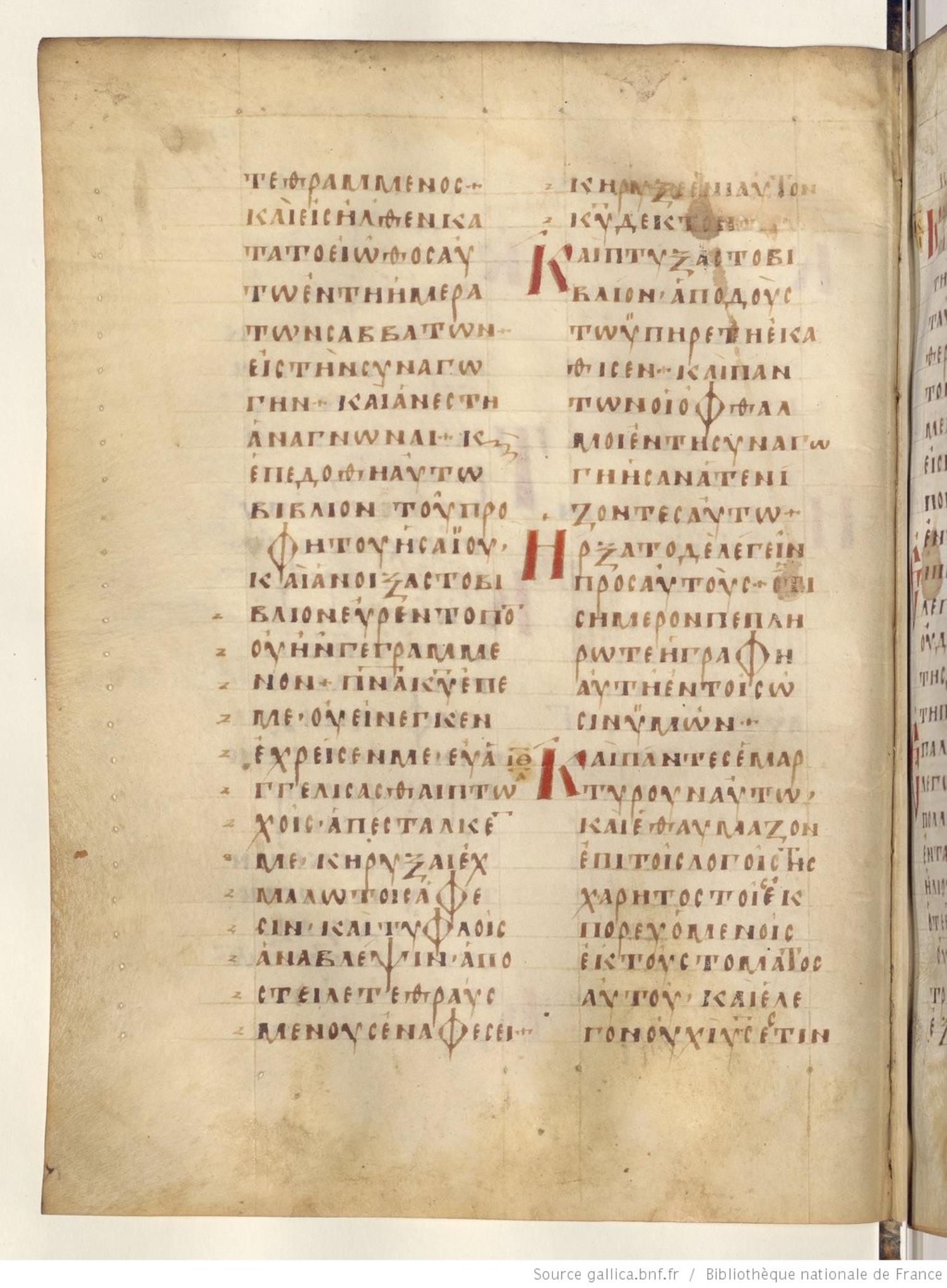 Codex Regius is an eighth-century (alt. date ninth-century) manuscript of the Gospels on parchment; 257 leaves, 2 columns, 25 lines per column. Only a selection of images are available at this time. For recent images please see the Bibliothèque Nationale.