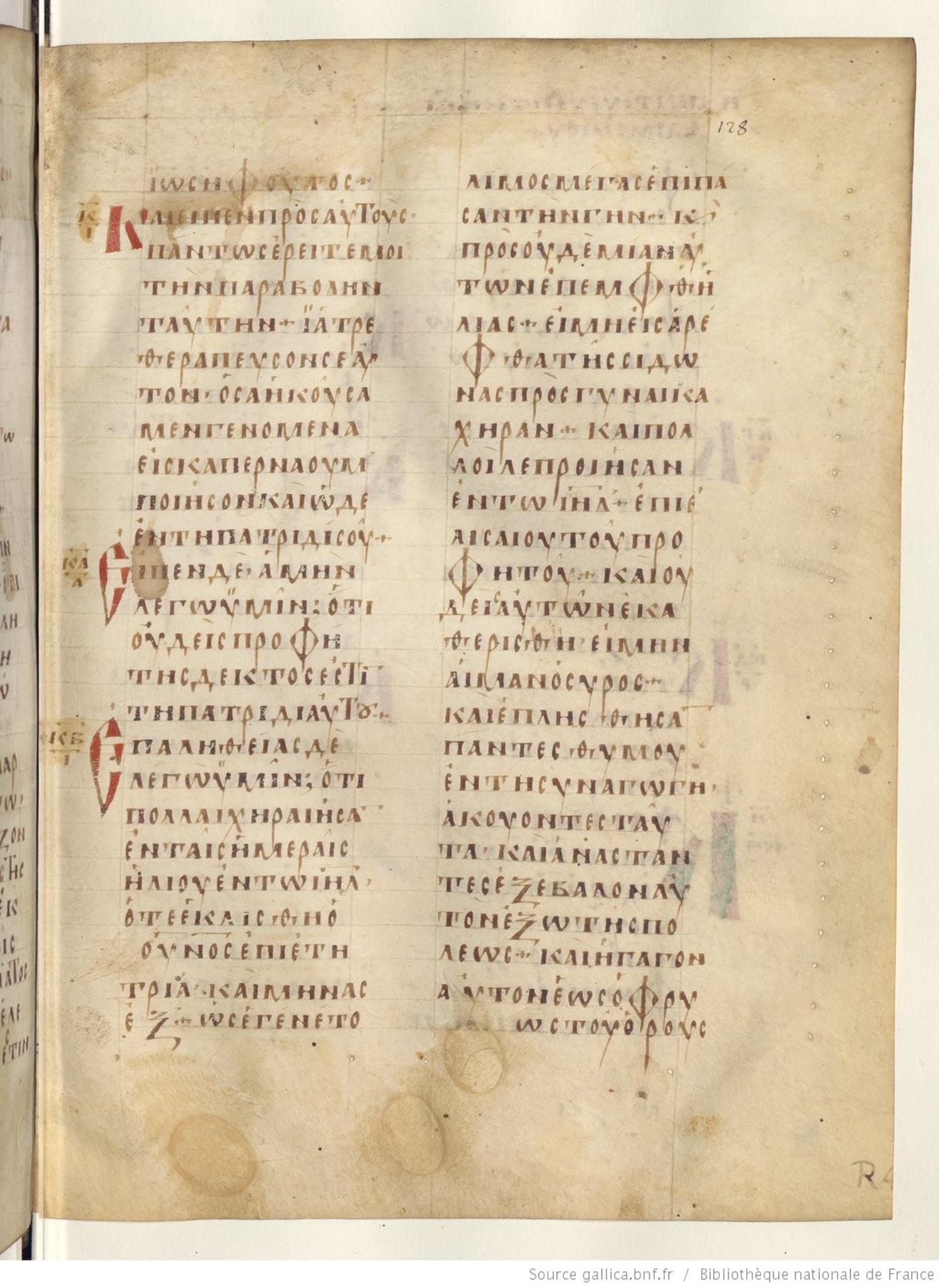 Codex Regius is an eighth-century (alt. date ninth-century) manuscript of the Gospels on parchment; 257 leaves, 2 columns, 25 lines per column. Only a selection of images are available at this time. For recent images please see the Bibliothèque Nationale.
