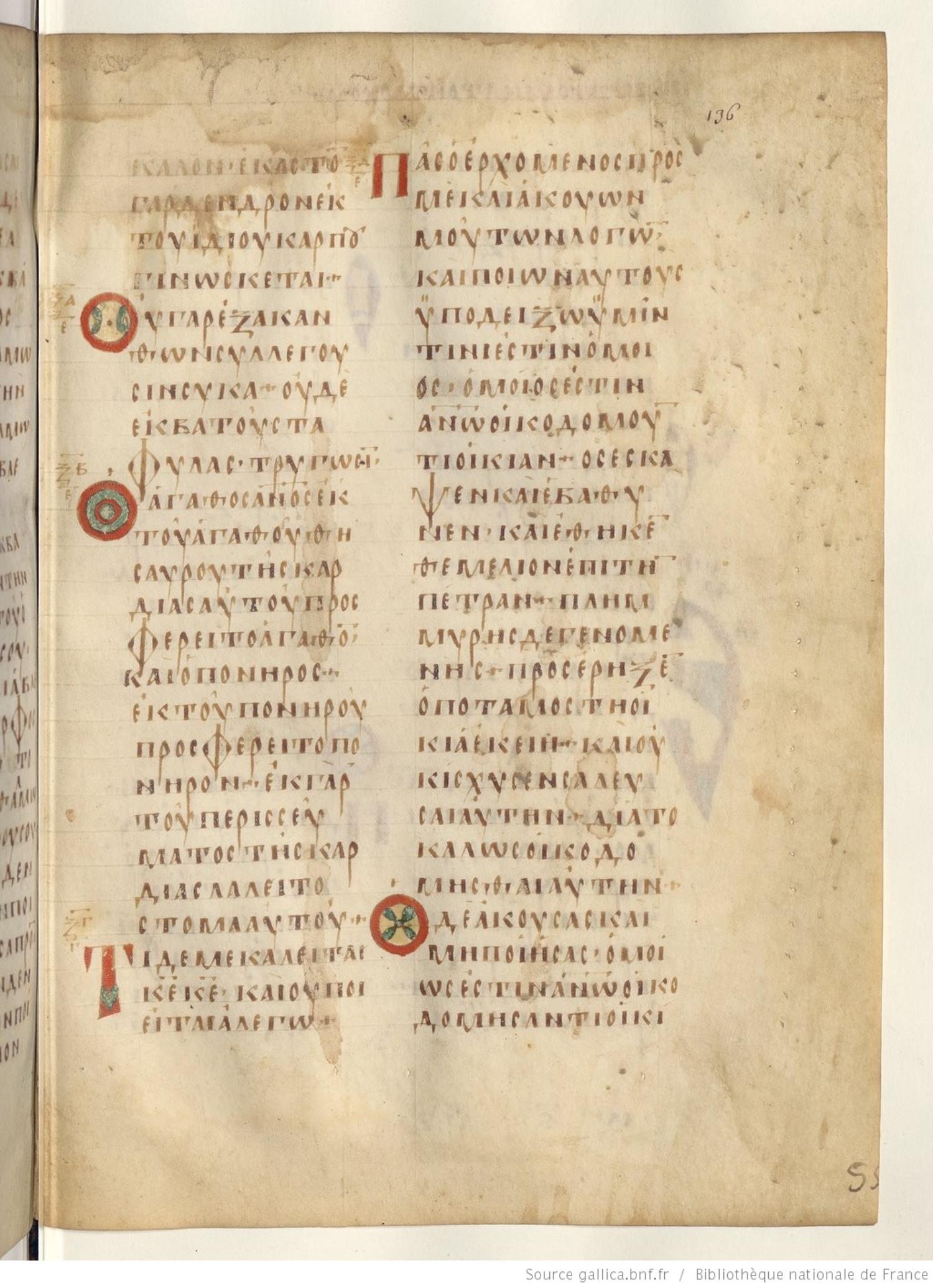 Codex Regius is an eighth-century (alt. date ninth-century) manuscript of the Gospels on parchment; 257 leaves, 2 columns, 25 lines per column. Only a selection of images are available at this time. For recent images please see the Bibliothèque Nationale.
