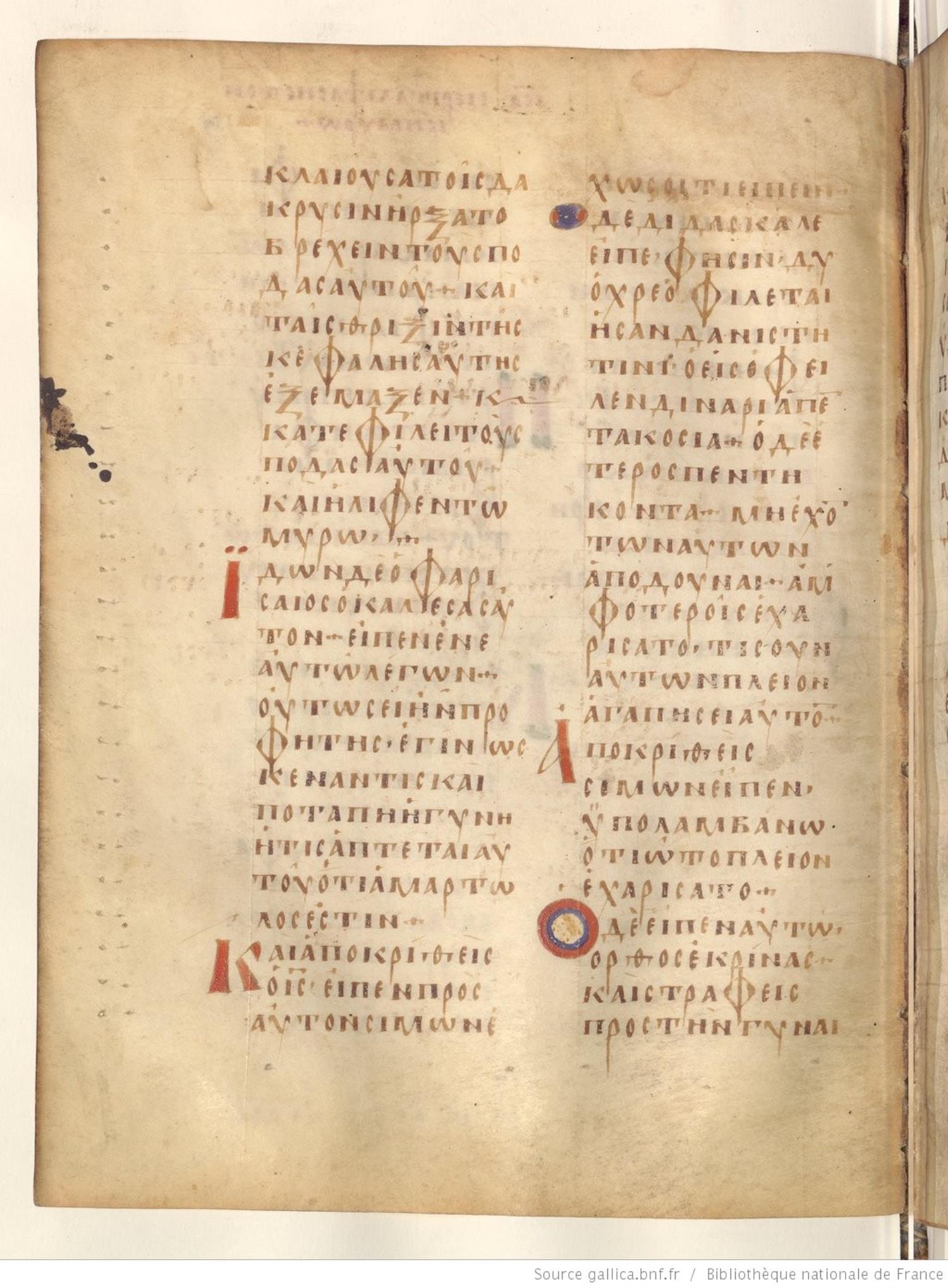 Codex Regius is an eighth-century (alt. date ninth-century) manuscript of the Gospels on parchment; 257 leaves, 2 columns, 25 lines per column. Only a selection of images are available at this time. For recent images please see the Bibliothèque Nationale.