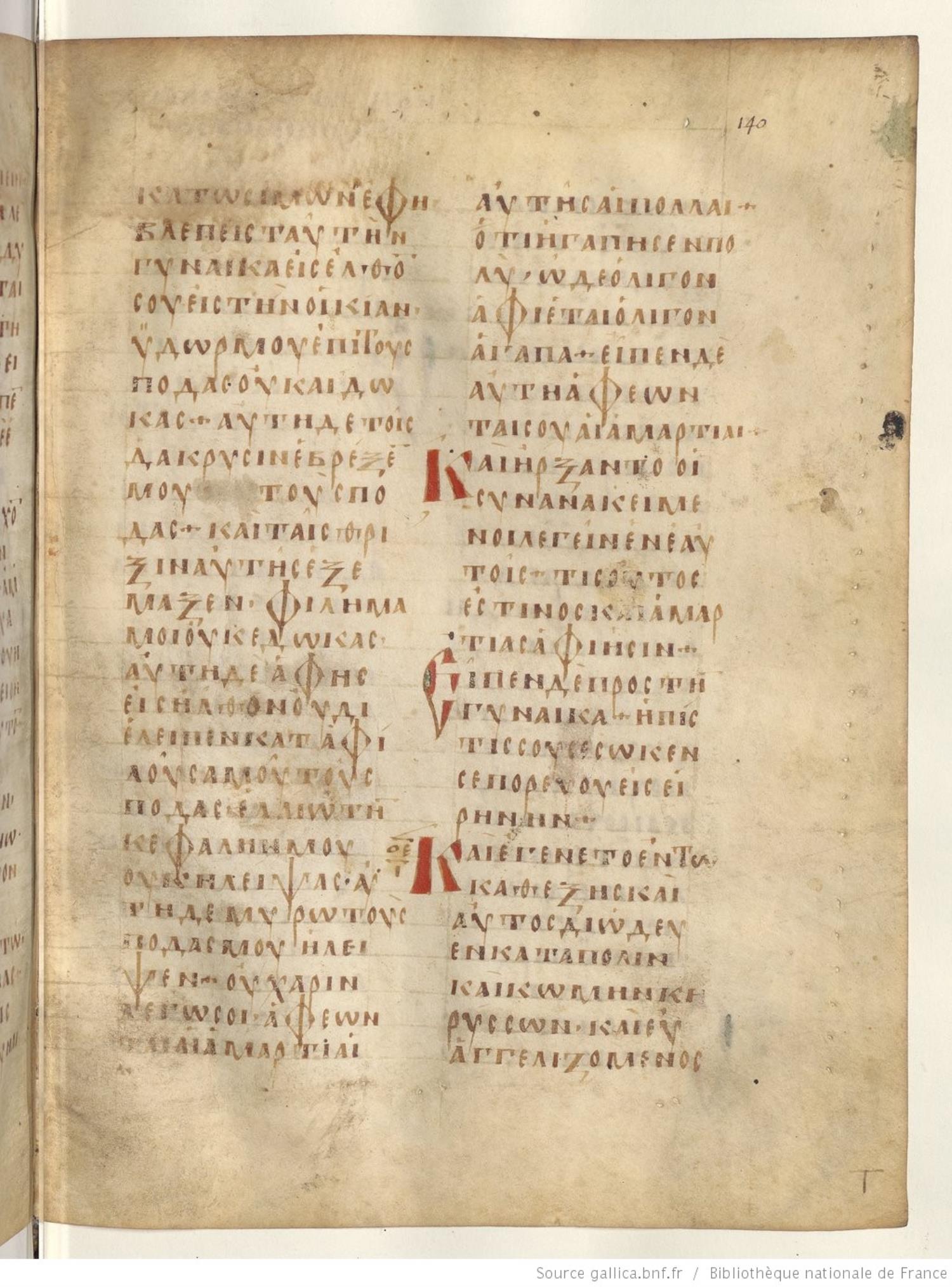Codex Regius is an eighth-century (alt. date ninth-century) manuscript of the Gospels on parchment; 257 leaves, 2 columns, 25 lines per column. Only a selection of images are available at this time. For recent images please see the Bibliothèque Nationale.