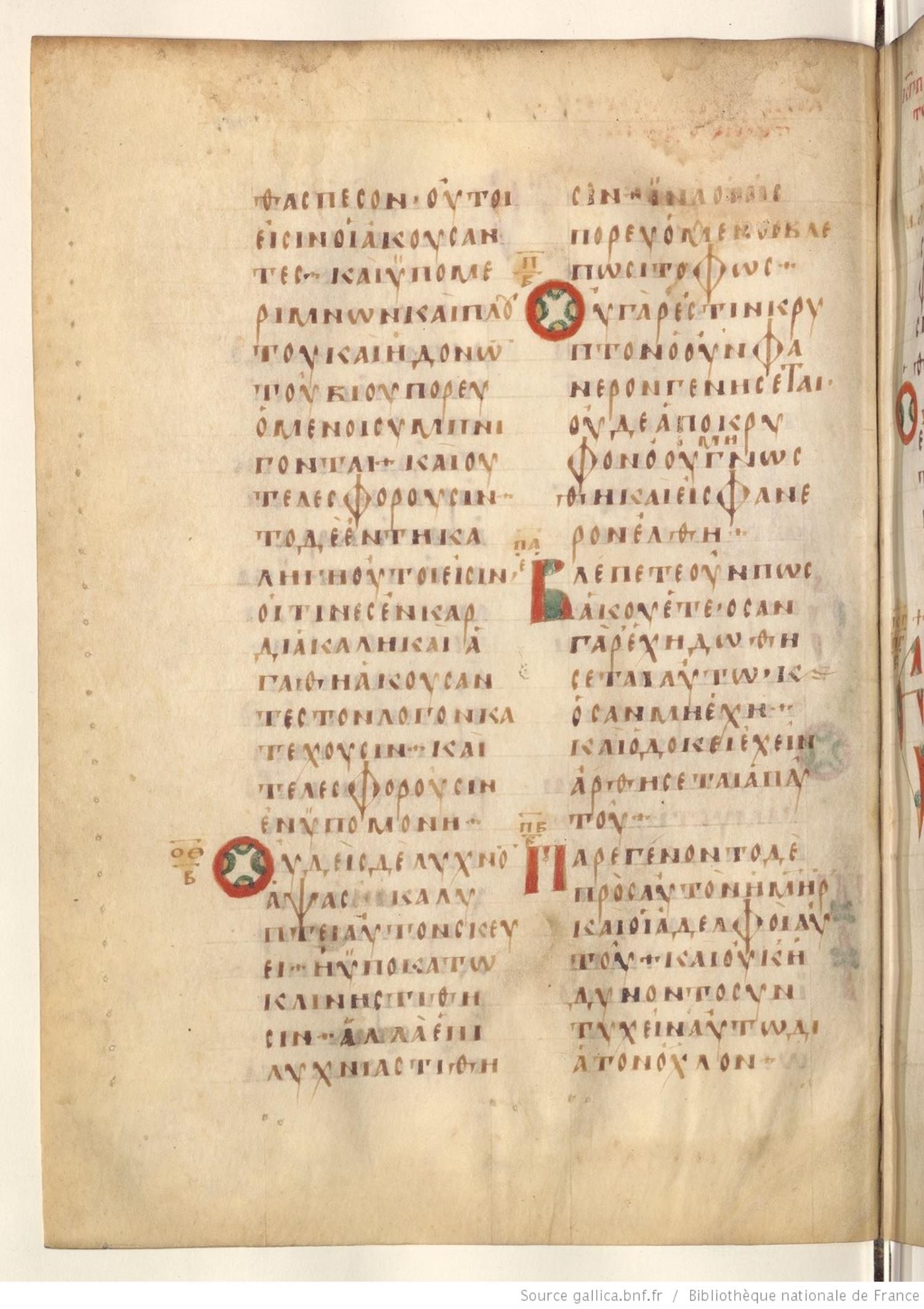 Codex Regius is an eighth-century (alt. date ninth-century) manuscript of the Gospels on parchment; 257 leaves, 2 columns, 25 lines per column. Only a selection of images are available at this time. For recent images please see the Bibliothèque Nationale.