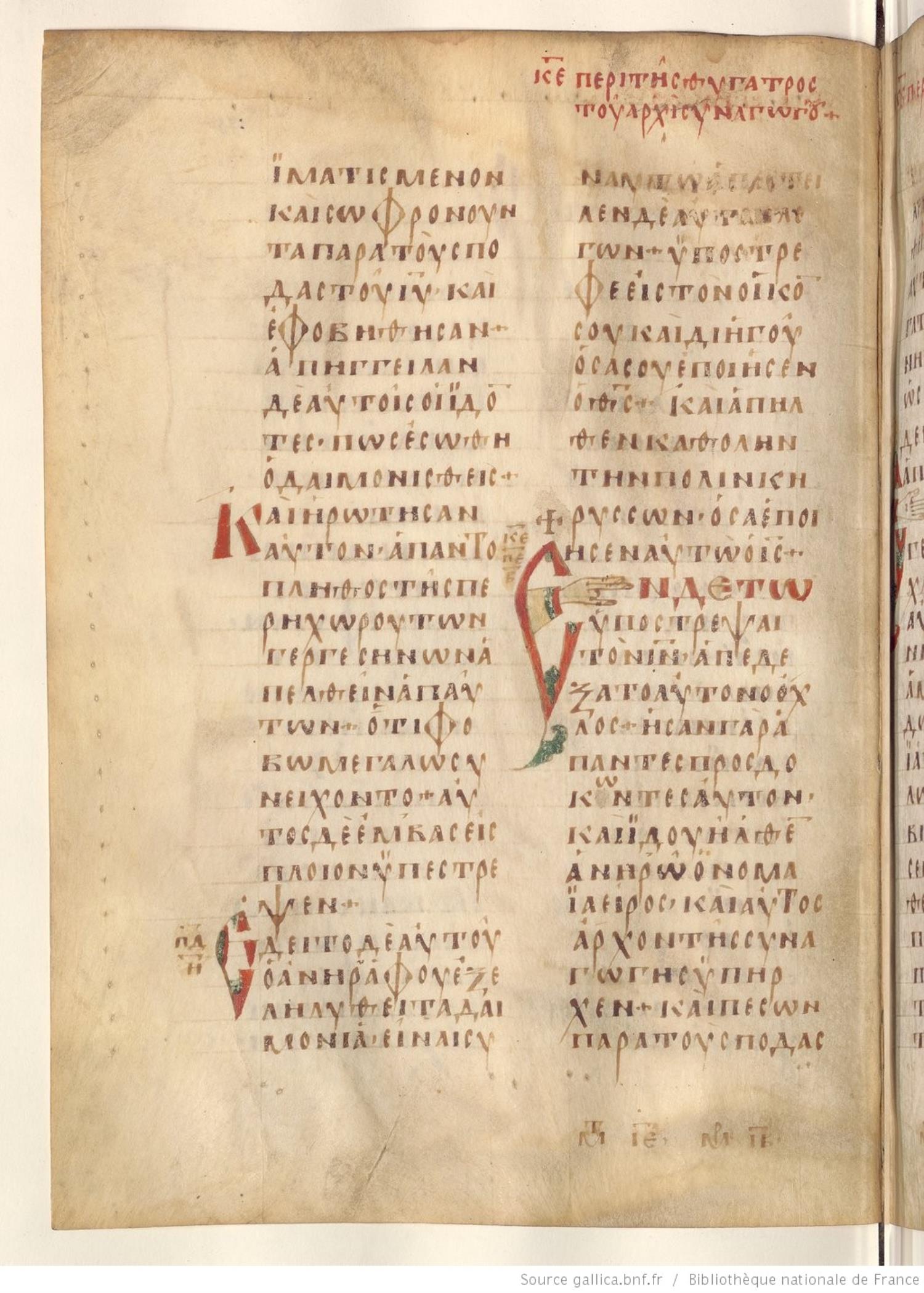 Codex Regius is an eighth-century (alt. date ninth-century) manuscript of the Gospels on parchment; 257 leaves, 2 columns, 25 lines per column. Only a selection of images are available at this time. For recent images please see the Bibliothèque Nationale.