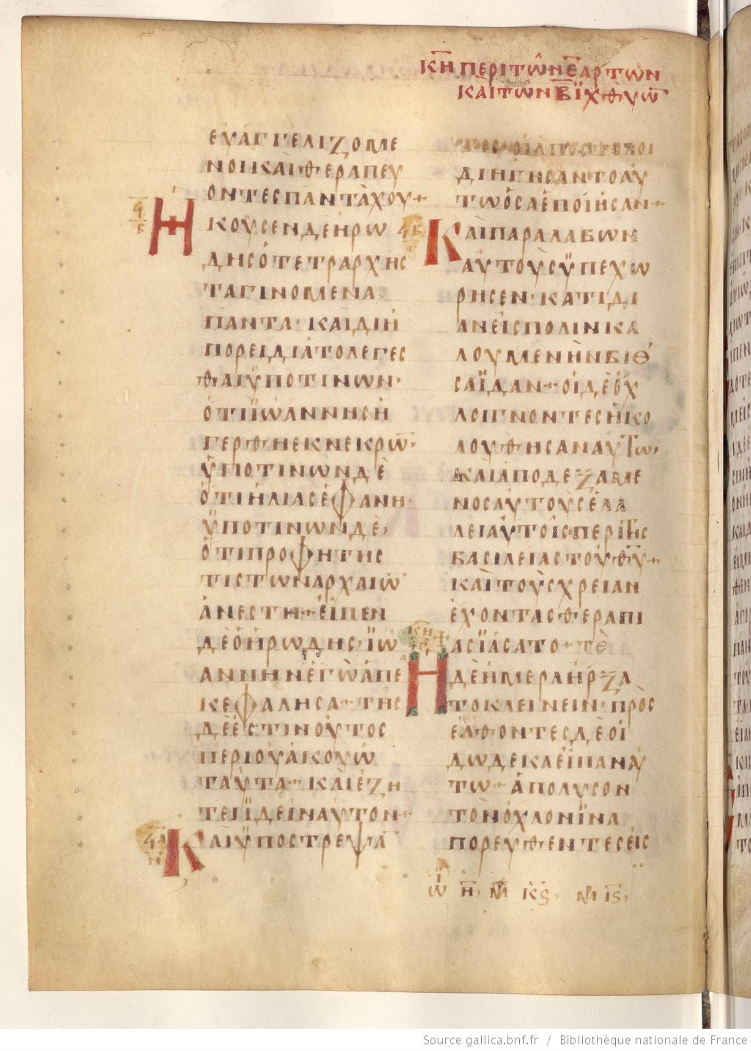 Codex Regius is an eighth-century (alt. date ninth-century) manuscript of the Gospels on parchment; 257 leaves, 2 columns, 25 lines per column. Only a selection of images are available at this time. For recent images please see the Bibliothèque Nationale.