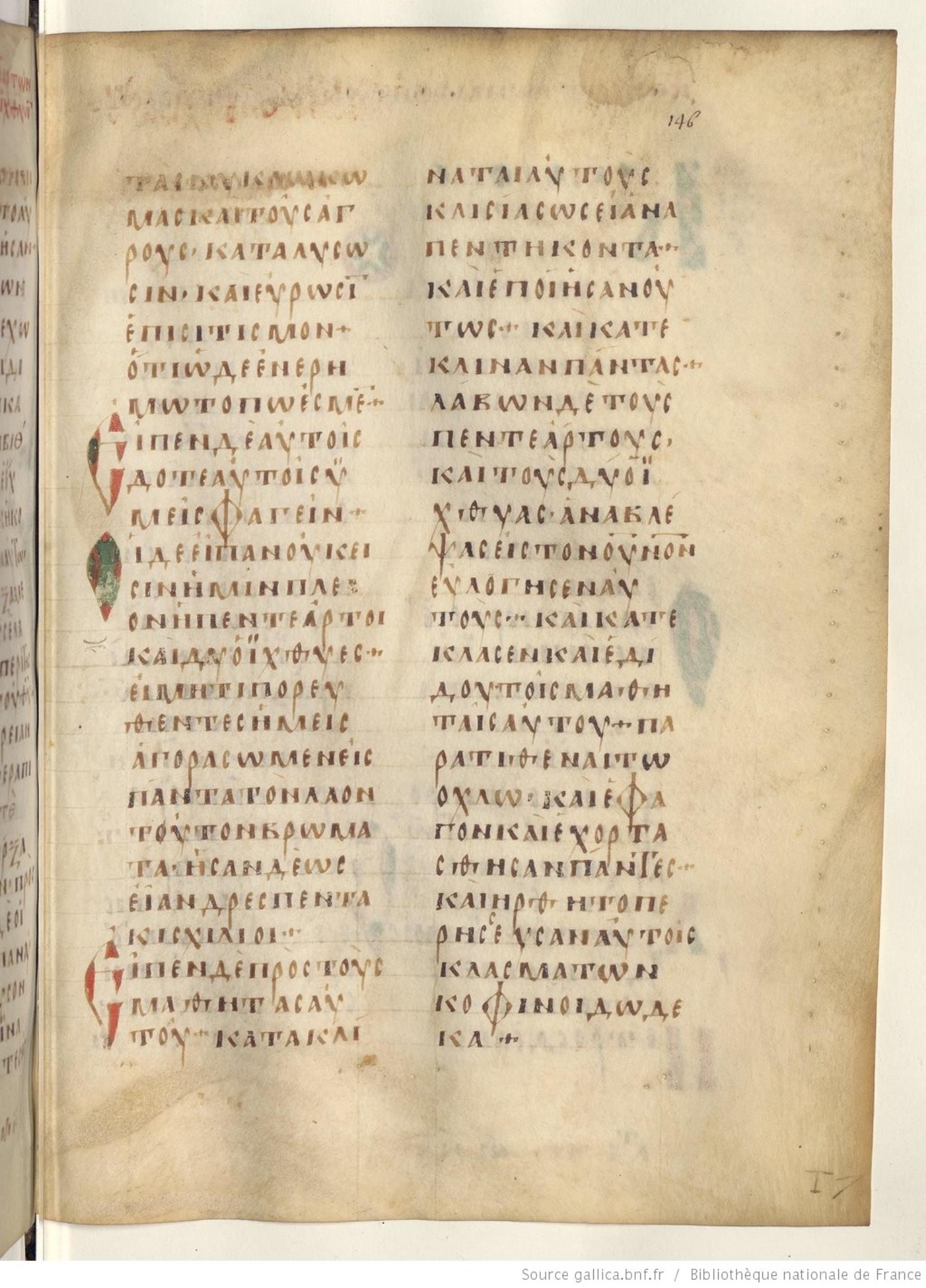 Codex Regius is an eighth-century (alt. date ninth-century) manuscript of the Gospels on parchment; 257 leaves, 2 columns, 25 lines per column. Only a selection of images are available at this time. For recent images please see the Bibliothèque Nationale.