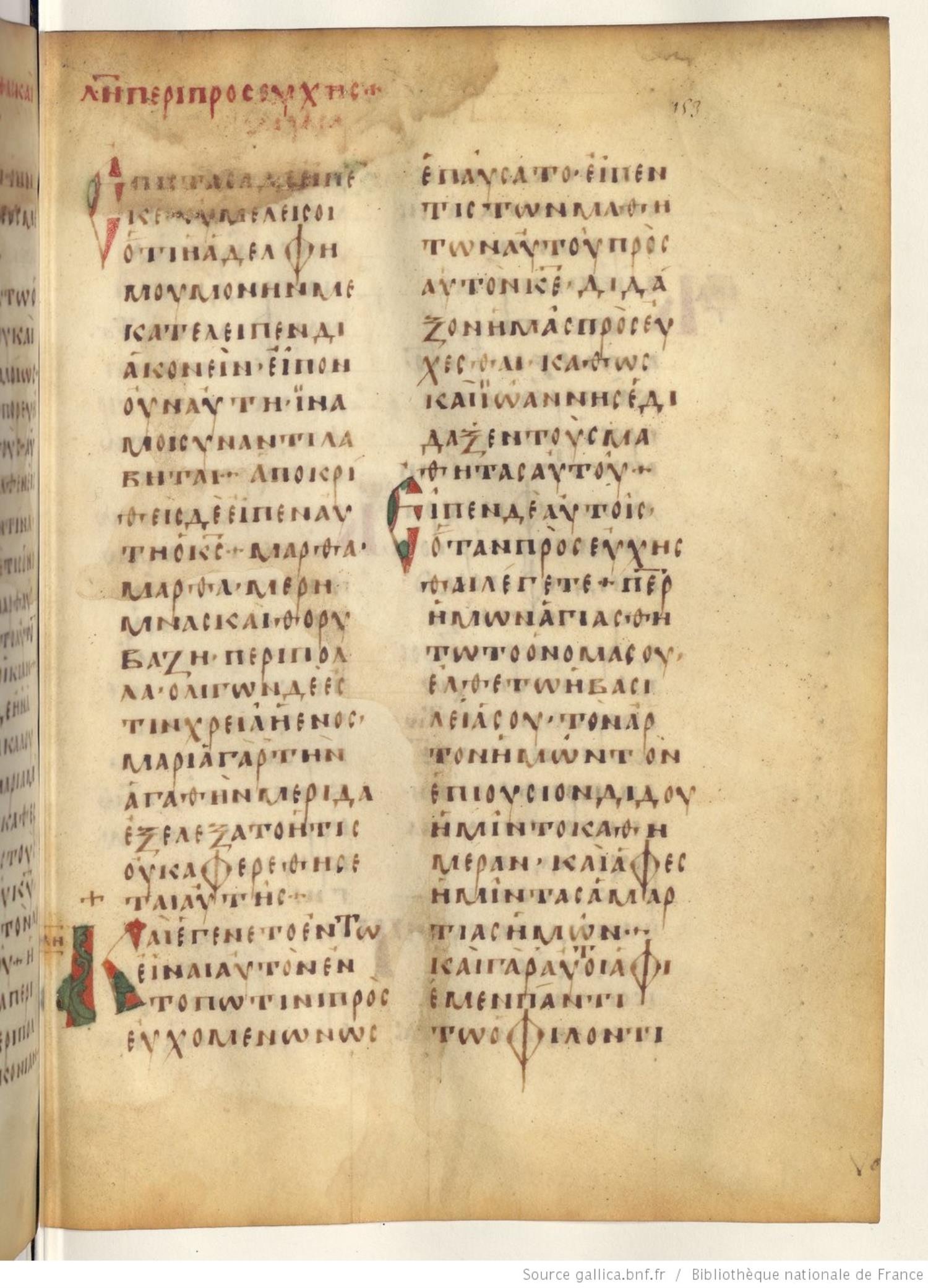 Codex Regius is an eighth-century (alt. date ninth-century) manuscript of the Gospels on parchment; 257 leaves, 2 columns, 25 lines per column. Only a selection of images are available at this time. For recent images please see the Bibliothèque Nationale.
