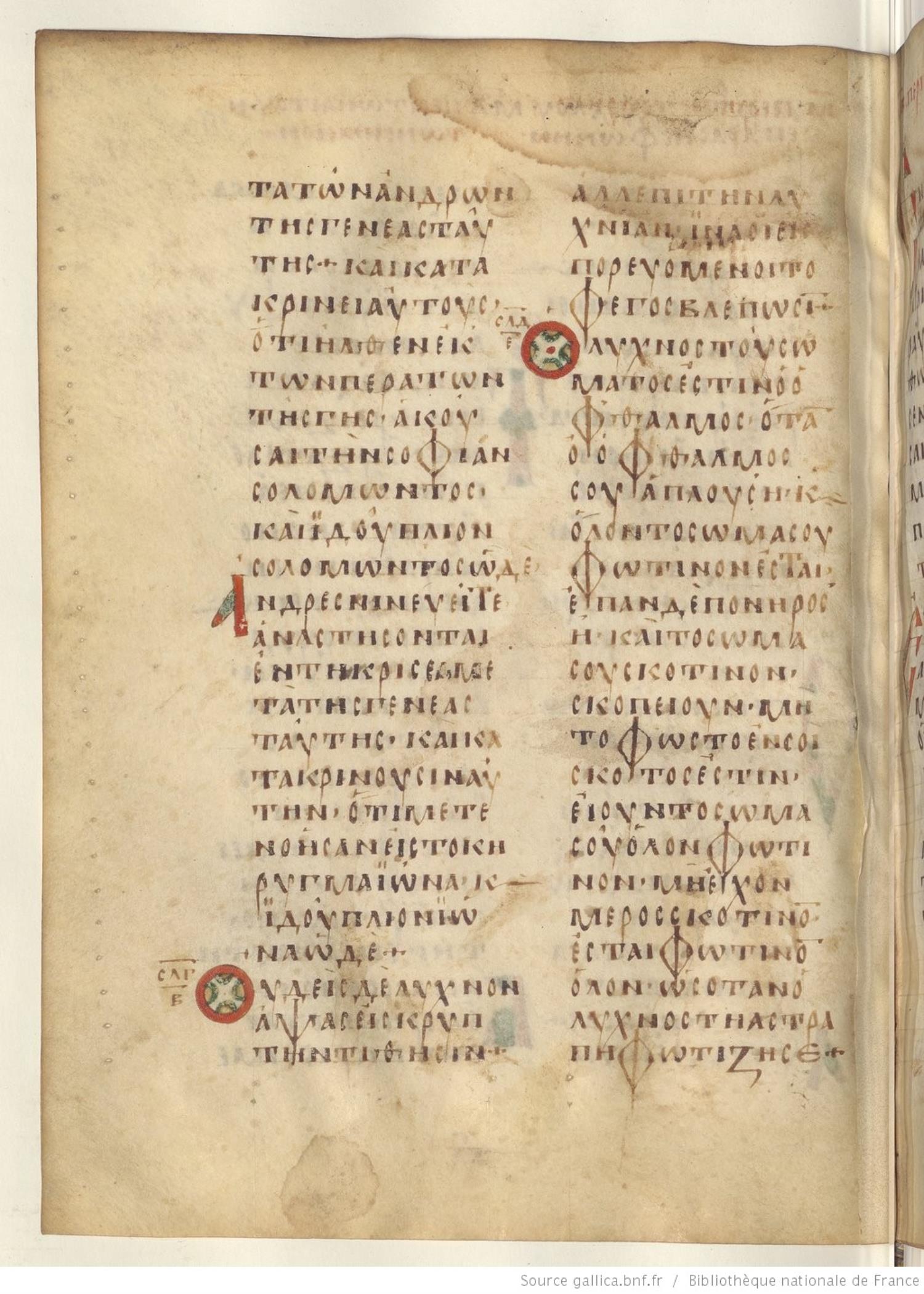 Codex Regius is an eighth-century (alt. date ninth-century) manuscript of the Gospels on parchment; 257 leaves, 2 columns, 25 lines per column. Only a selection of images are available at this time. For recent images please see the Bibliothèque Nationale.