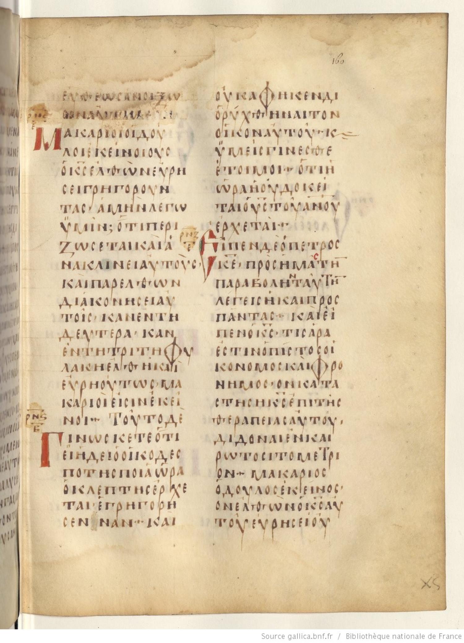 Codex Regius is an eighth-century (alt. date ninth-century) manuscript of the Gospels on parchment; 257 leaves, 2 columns, 25 lines per column. Only a selection of images are available at this time. For recent images please see the Bibliothèque Nationale.