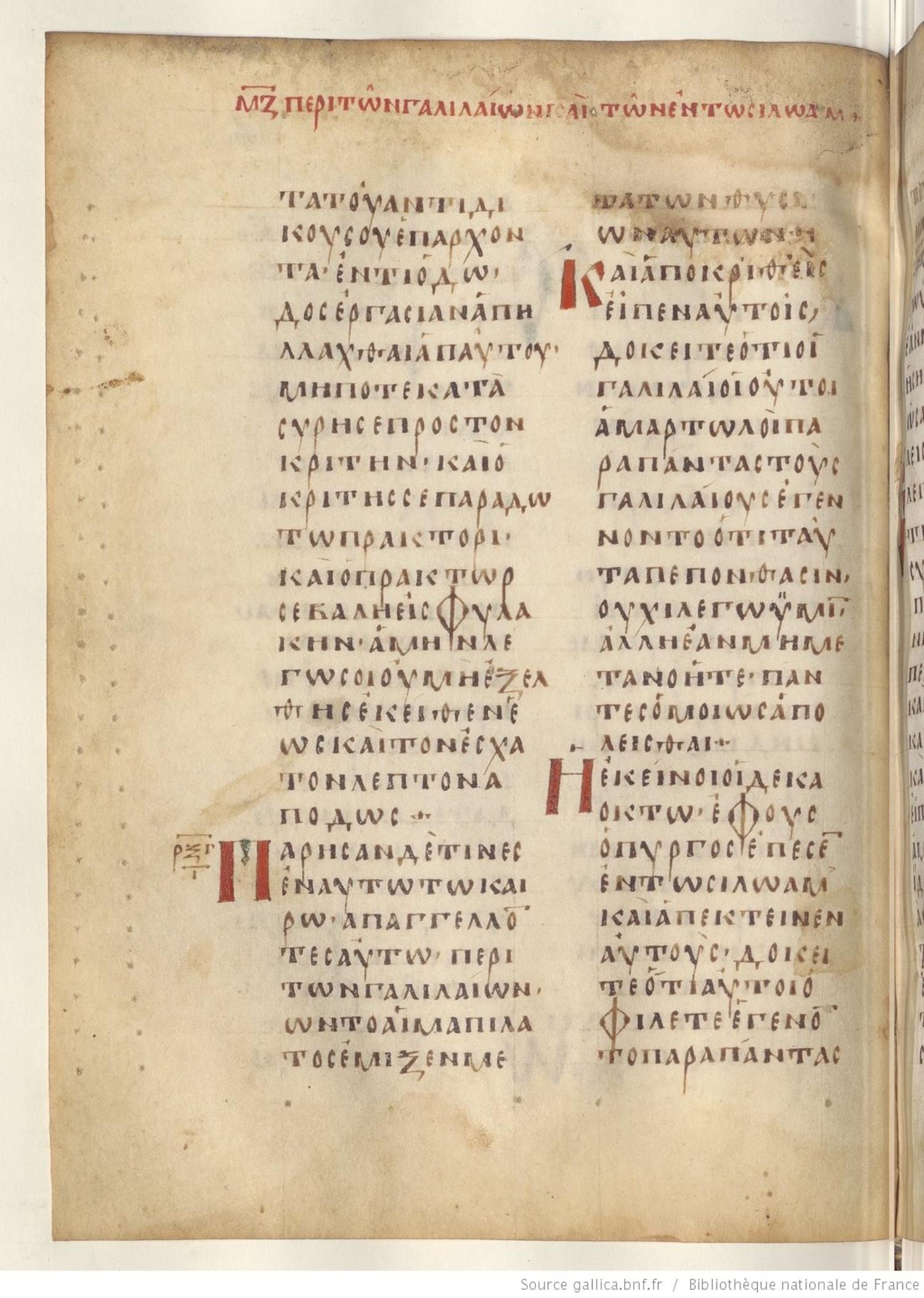 Codex Regius is an eighth-century (alt. date ninth-century) manuscript of the Gospels on parchment; 257 leaves, 2 columns, 25 lines per column. Only a selection of images are available at this time. For recent images please see the Bibliothèque Nationale.