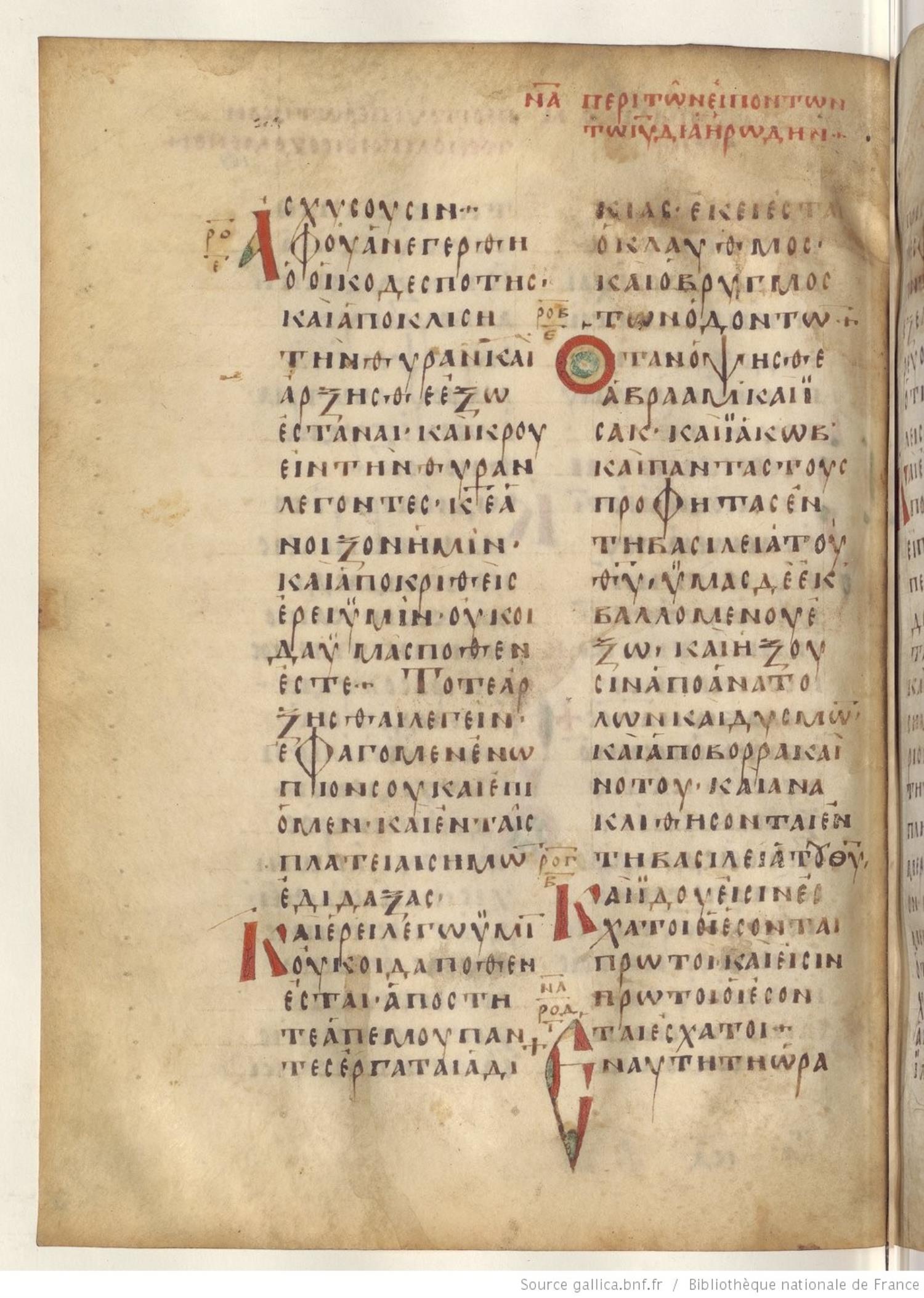 Codex Regius is an eighth-century (alt. date ninth-century) manuscript of the Gospels on parchment; 257 leaves, 2 columns, 25 lines per column. Only a selection of images are available at this time. For recent images please see the Bibliothèque Nationale.