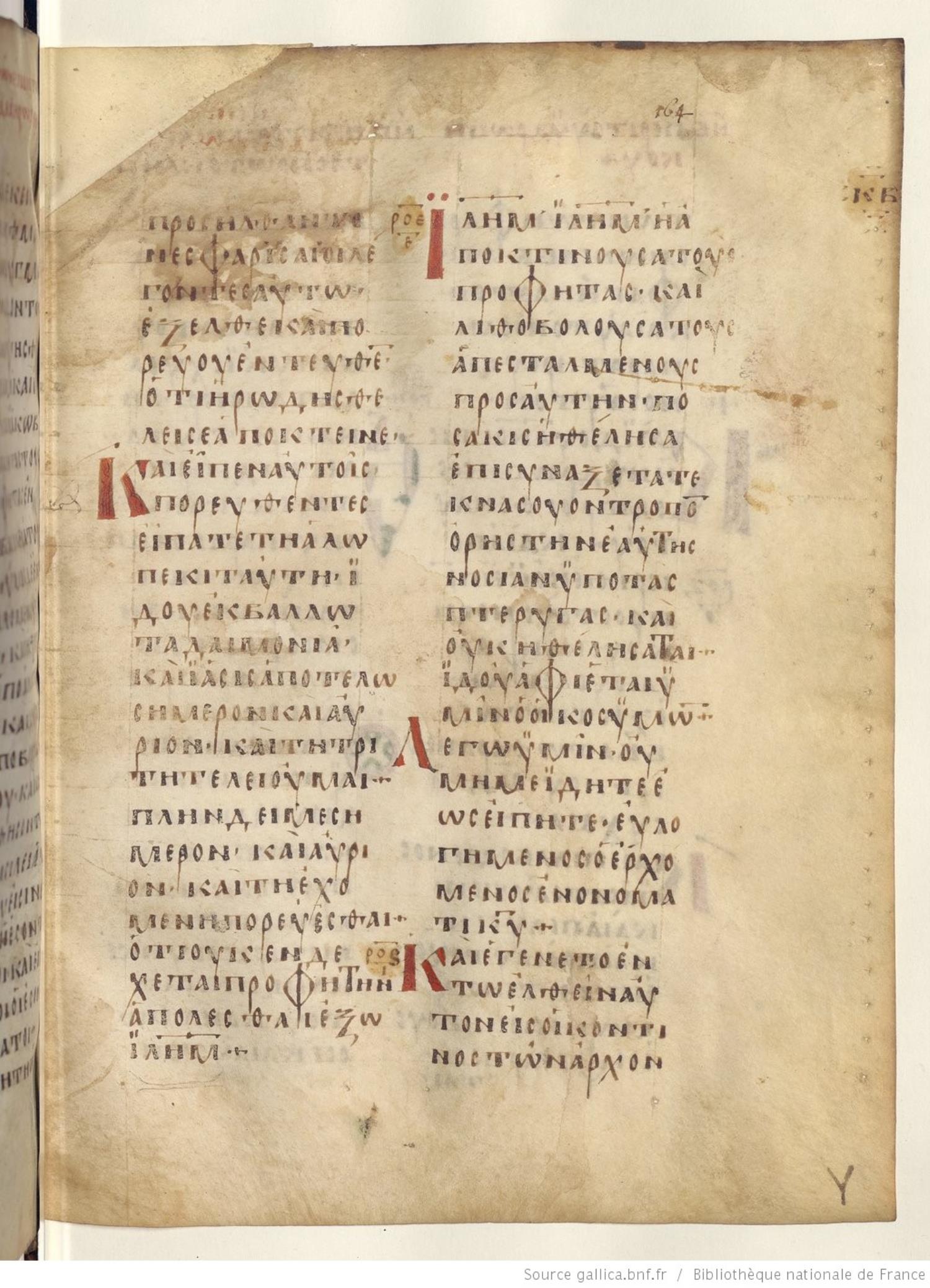 Codex Regius is an eighth-century (alt. date ninth-century) manuscript of the Gospels on parchment; 257 leaves, 2 columns, 25 lines per column. Only a selection of images are available at this time. For recent images please see the Bibliothèque Nationale.