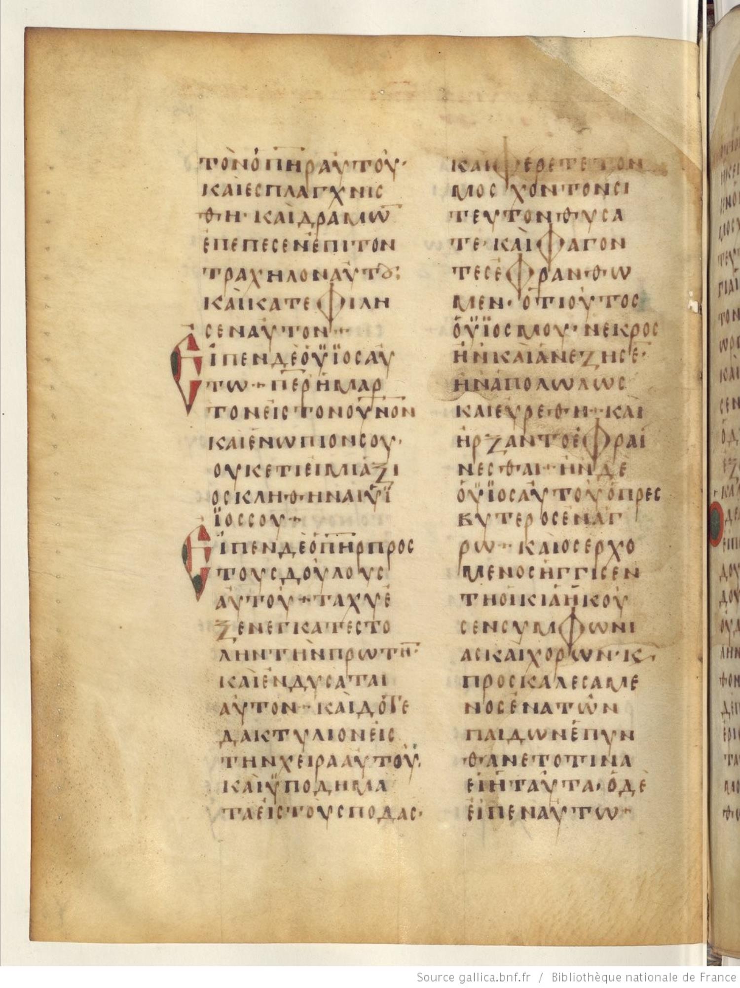 Codex Regius is an eighth-century (alt. date ninth-century) manuscript of the Gospels on parchment; 257 leaves, 2 columns, 25 lines per column. Only a selection of images are available at this time. For recent images please see the Bibliothèque Nationale.