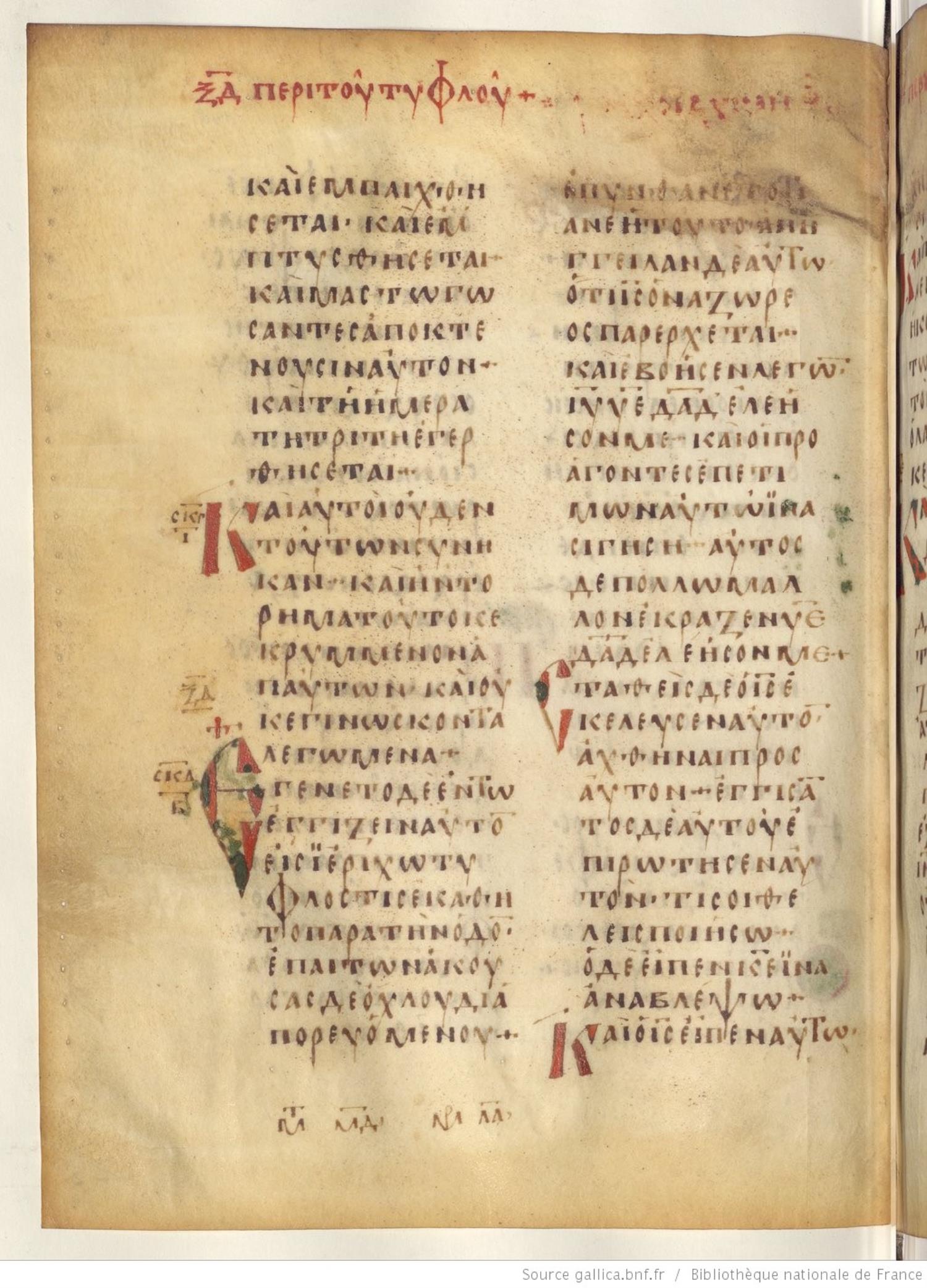 Codex Regius is an eighth-century (alt. date ninth-century) manuscript of the Gospels on parchment; 257 leaves, 2 columns, 25 lines per column. Only a selection of images are available at this time. For recent images please see the Bibliothèque Nationale.