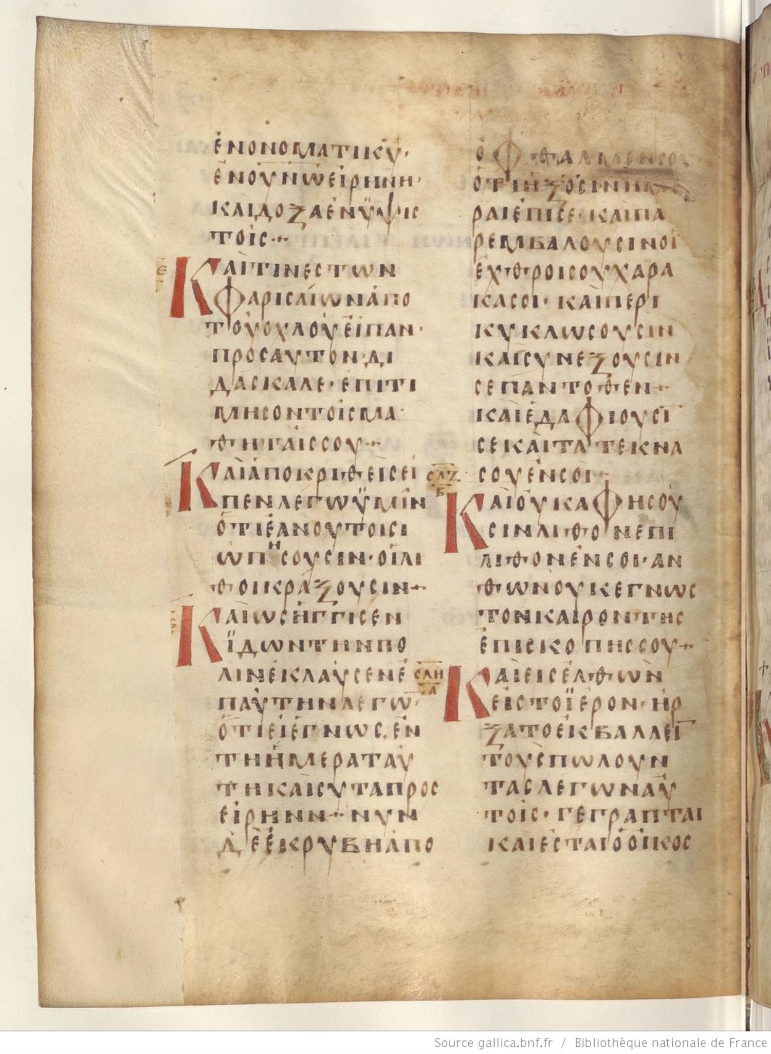 Codex Regius is an eighth-century (alt. date ninth-century) manuscript of the Gospels on parchment; 257 leaves, 2 columns, 25 lines per column. Only a selection of images are available at this time. For recent images please see the Bibliothèque Nationale.