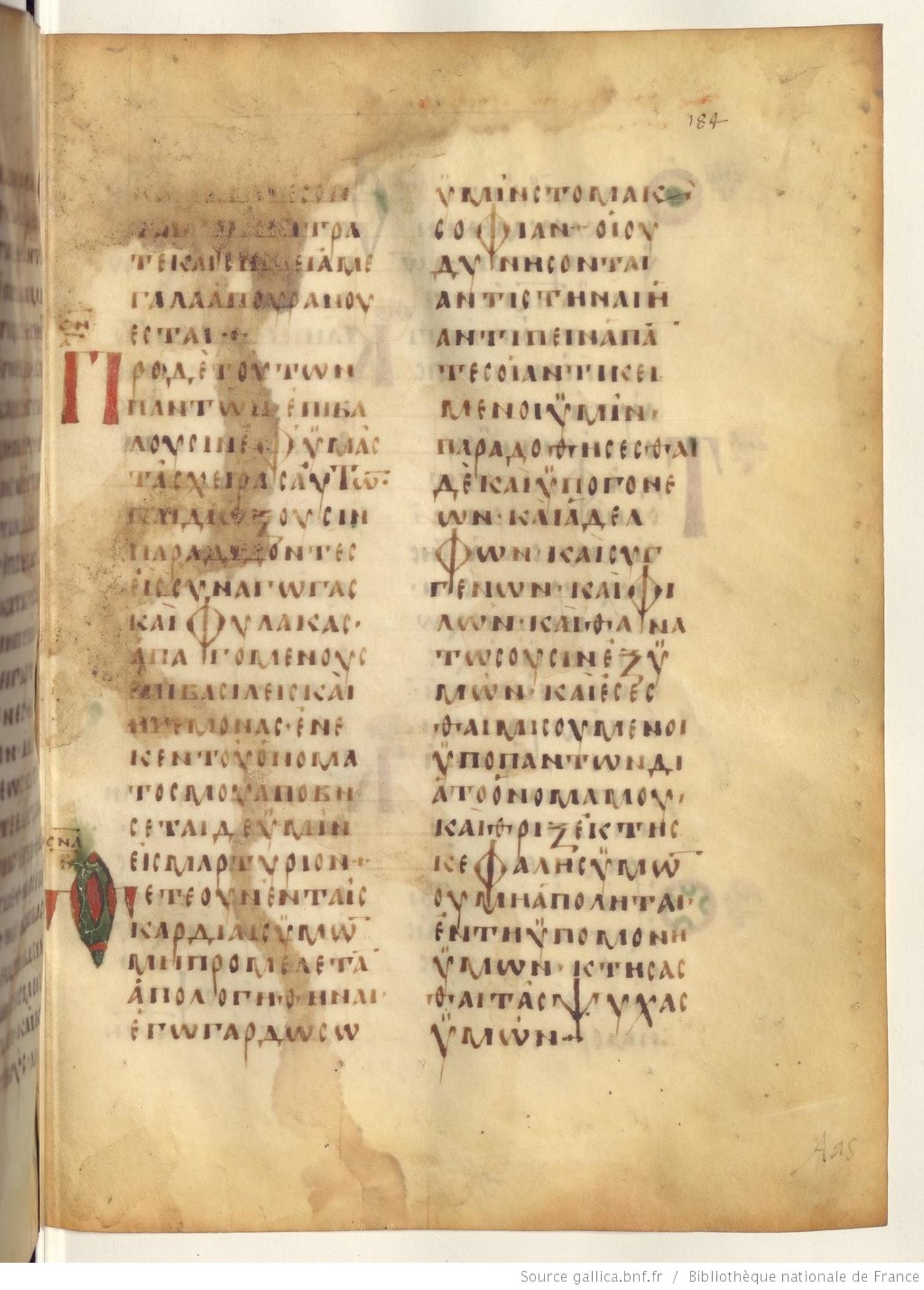 Codex Regius is an eighth-century (alt. date ninth-century) manuscript of the Gospels on parchment; 257 leaves, 2 columns, 25 lines per column. Only a selection of images are available at this time. For recent images please see the Bibliothèque Nationale.