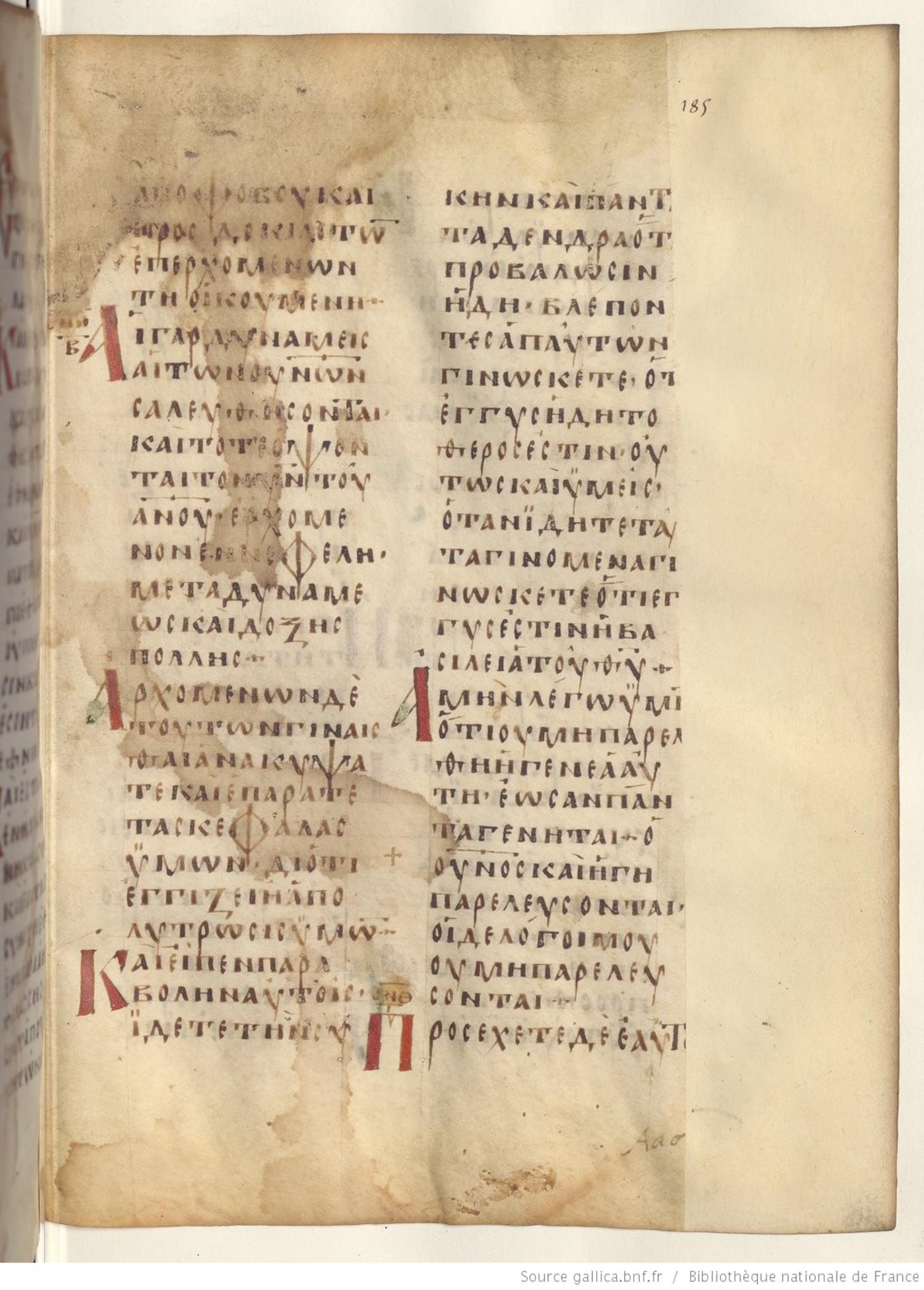 Codex Regius is an eighth-century (alt. date ninth-century) manuscript of the Gospels on parchment; 257 leaves, 2 columns, 25 lines per column. Only a selection of images are available at this time. For recent images please see the Bibliothèque Nationale.