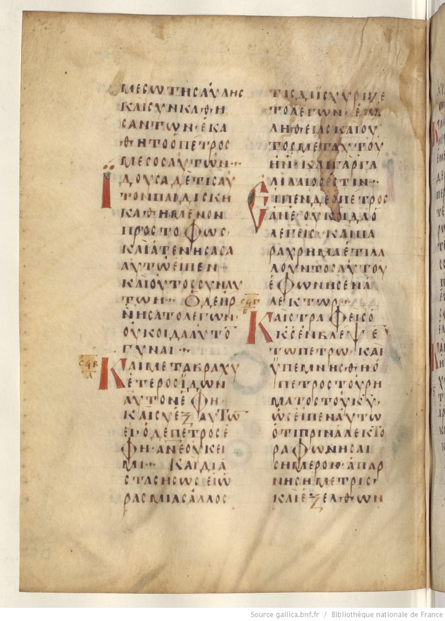 καὶ μετὰ βραχὺ ἕτερος ἰδὼν αὐτὸν ἔφη Καὶ σὺ ἐξ αὐτῶν εἶ· ὁ δὲ Πέτρος ἔφη Ἄνθρωπε, οὐκ εἰμί.