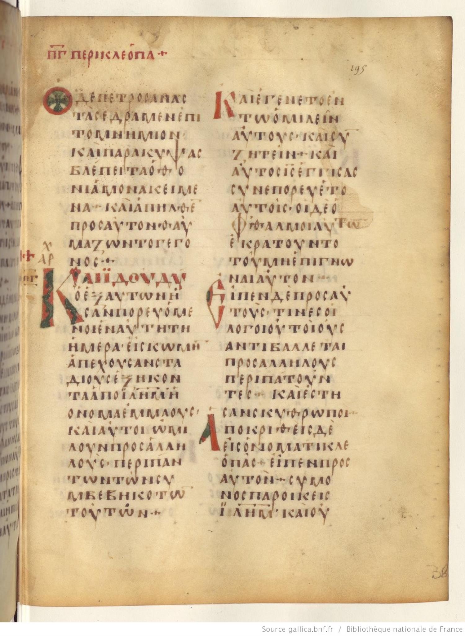 Codex Regius is an eighth-century (alt. date ninth-century) manuscript of the Gospels on parchment; 257 leaves, 2 columns, 25 lines per column. Only a selection of images are available at this time. For recent images please see the Bibliothèque Nationale.