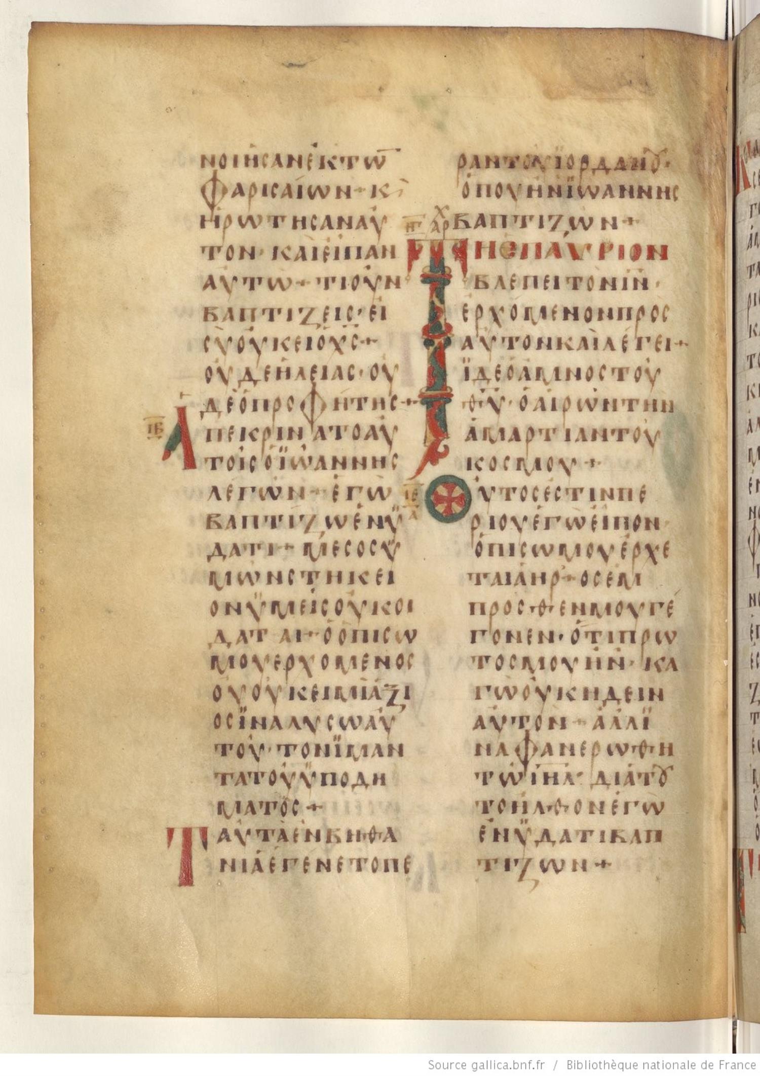 ἀπεκρίθη αὐτοῖς ὁ Ἰωάνης / Ἰωάννης λέγων Ἐγὼ βαπτίζω ἐν ὕδατι· μέσος ὑμῶν στήκει / ἕστηκεν ὃν ὑμεῖς οὐκ οἴδατε,