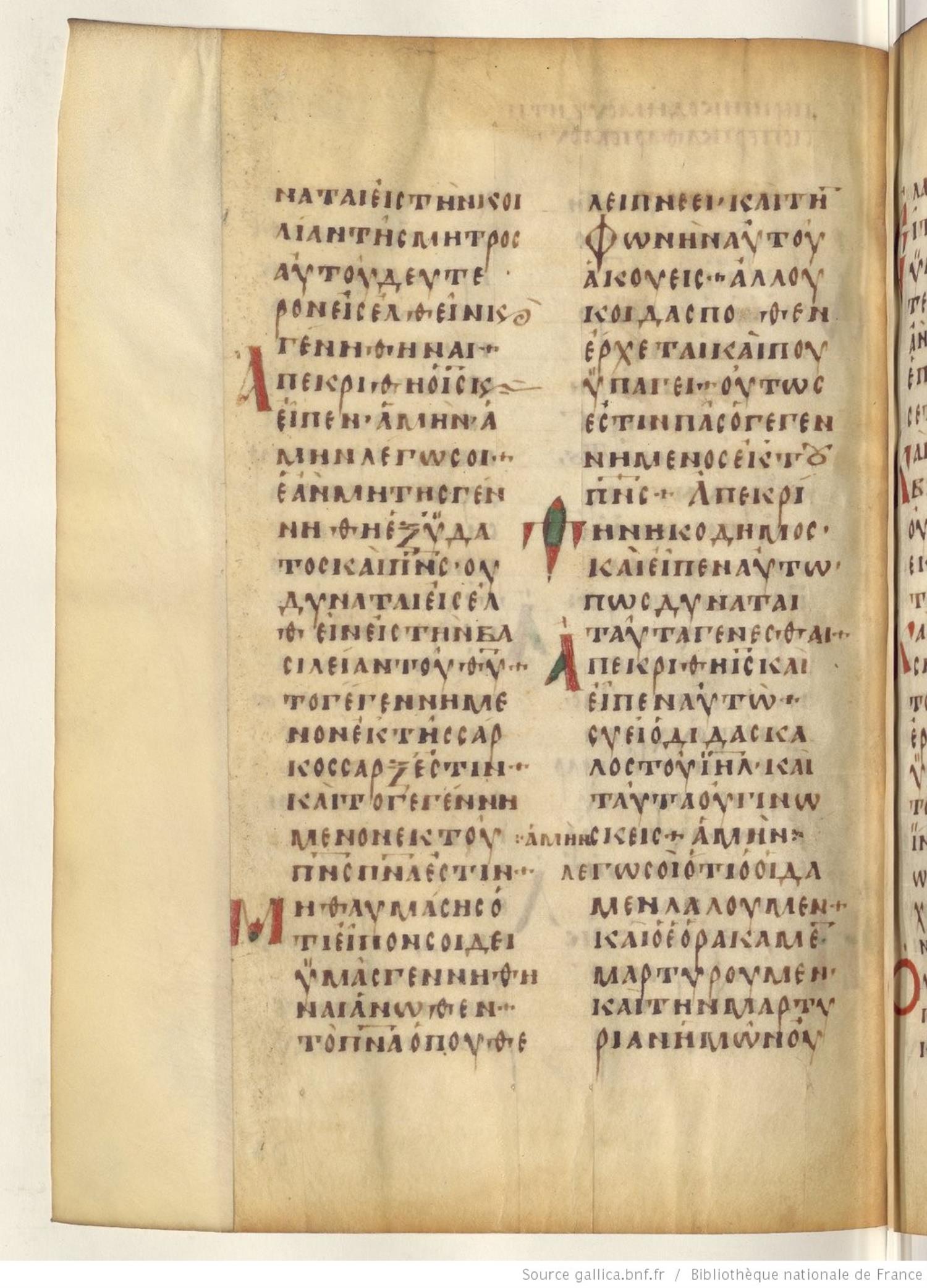 Codex Regius is an eighth-century (alt. date ninth-century) manuscript of the Gospels on parchment; 257 leaves, 2 columns, 25 lines per column. Only a selection of images are available at this time. For recent images please see the Bibliothèque Nationale.