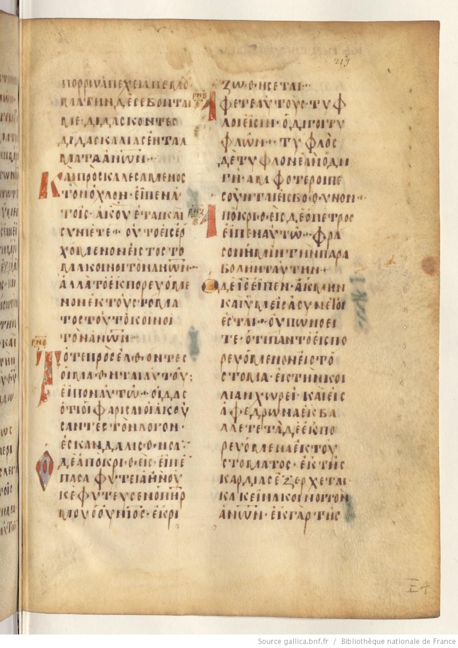 Codex Regius is an eighth-century (alt. date ninth-century) manuscript of the Gospels on parchment; 257 leaves, 2 columns, 25 lines per column. Only a selection of images are available at this time. For recent images please see the Bibliothèque Nationale.