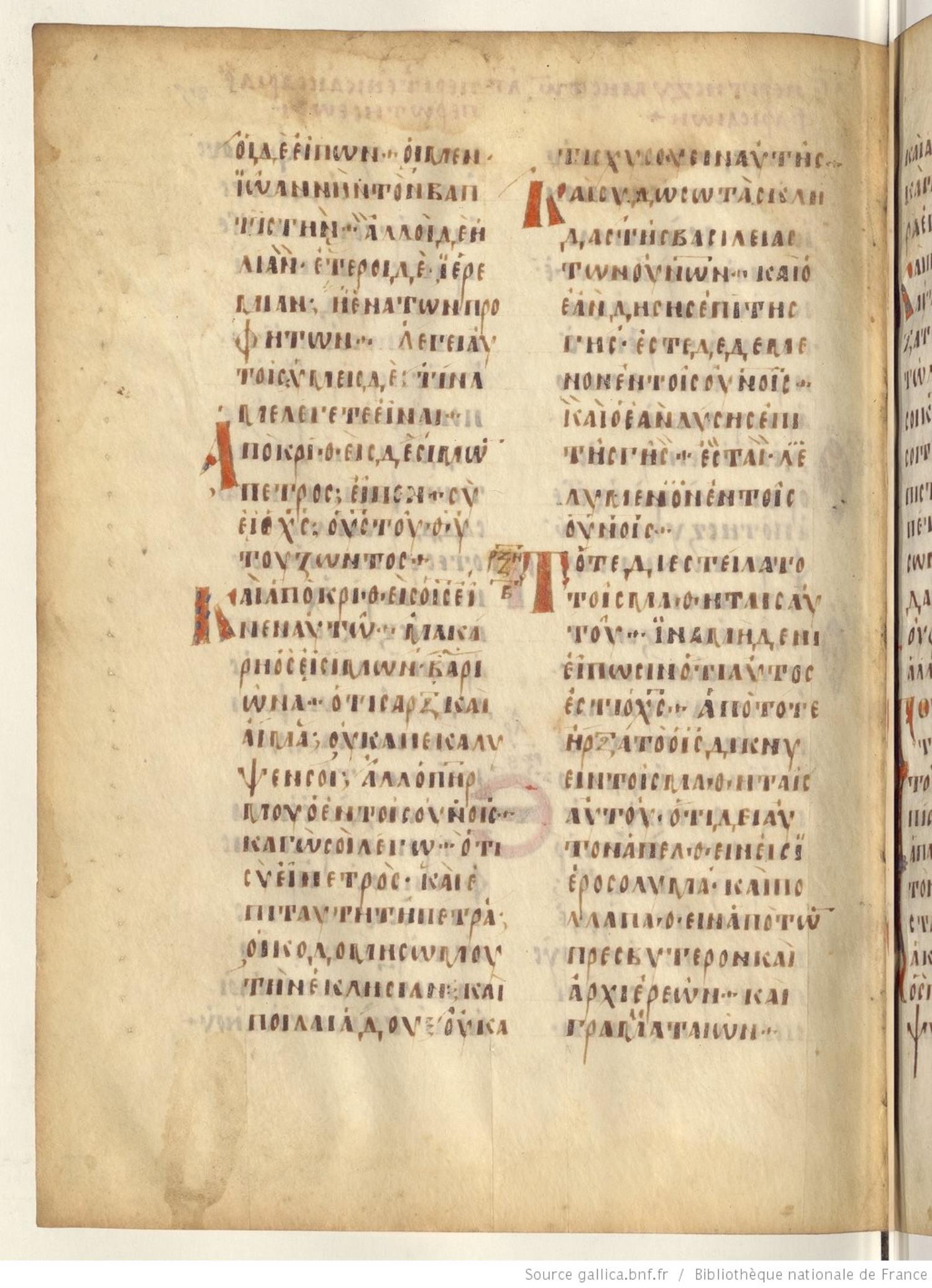 Codex Regius is an eighth-century (alt. date ninth-century) manuscript of the Gospels on parchment; 257 leaves, 2 columns, 25 lines per column. Only a selection of images are available at this time. For recent images please see the Bibliothèque Nationale.