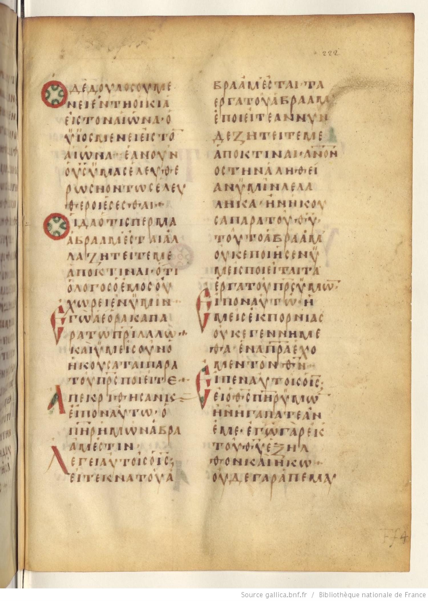 ἀπεκρίθησαν καὶ εἶπαν αὐτῷ Ὁ πατὴρ ἡμῶν Ἀβραάμ ἐστιν. λέγει αὐτοῖς ὁ Ἰησοῦς Εἰ τέκνα τοῦ Ἀβραάμ ἐστε, τὰ ἔργα τοῦ Ἀβραὰμ ποιεῖτε / ἐποιεῖτε·